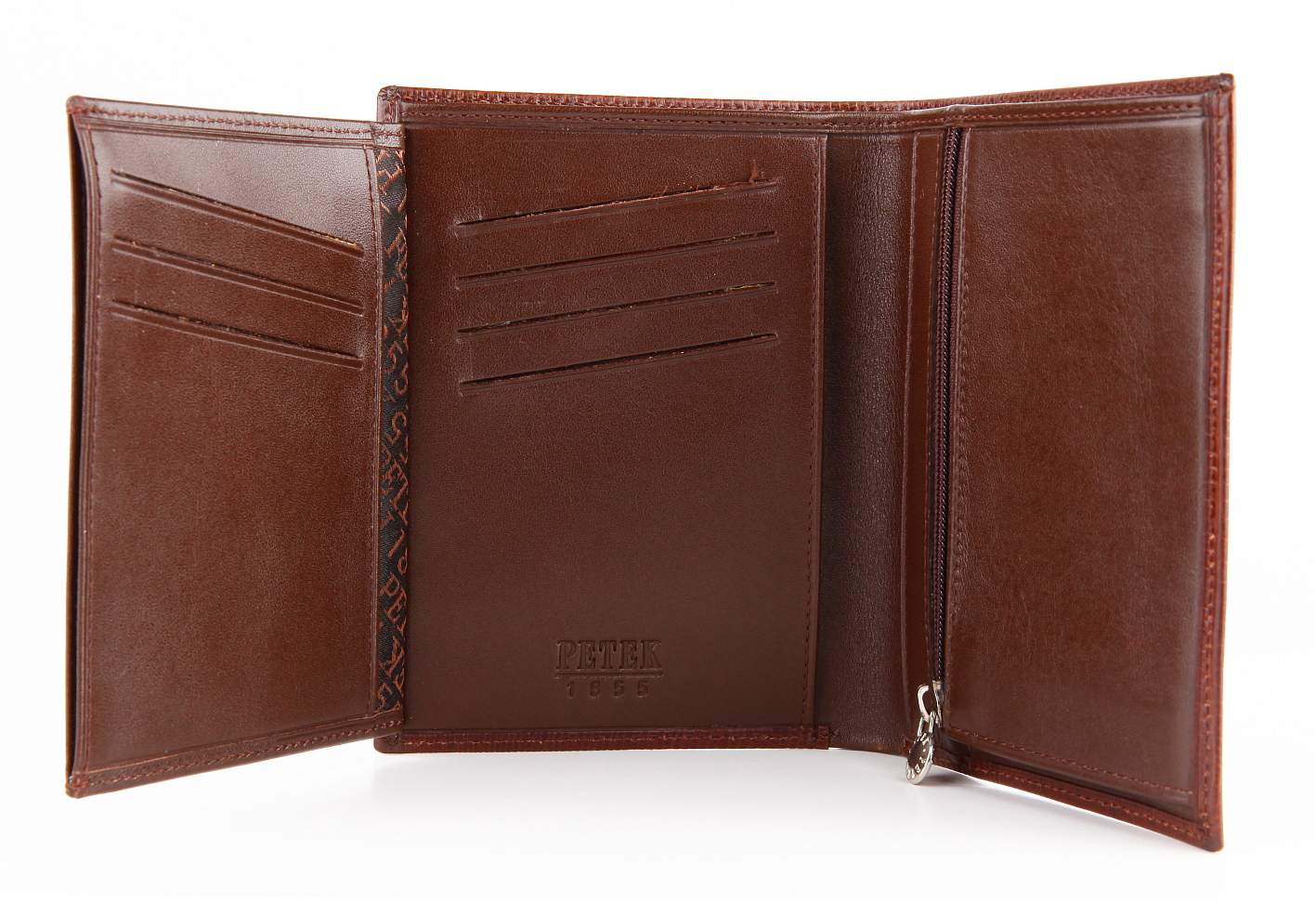 Мужское портмоне Petek является современным аксессуаром, который может быть использован для хранения денег, кредитных карт и других мелких предметов. Оно выполнено из высококачественной кожи, что делает его долговечным и привлекательным внешне. Внутри портмоне имеет 2 отделения для купюр и 1 отделение с прозрачным окошком для удобного просмотра содержимого. Также внутри имеется 7 отсеков для кредитных карт или визиток и монетница на молнии для хранения монет. Кроме того, портмоне имеет потайные кармашки, которые позволяют хранить мелкие предметы. В целом, это удобный и функциональный аксессуар для мужчин, которые ценят качество и стиль.