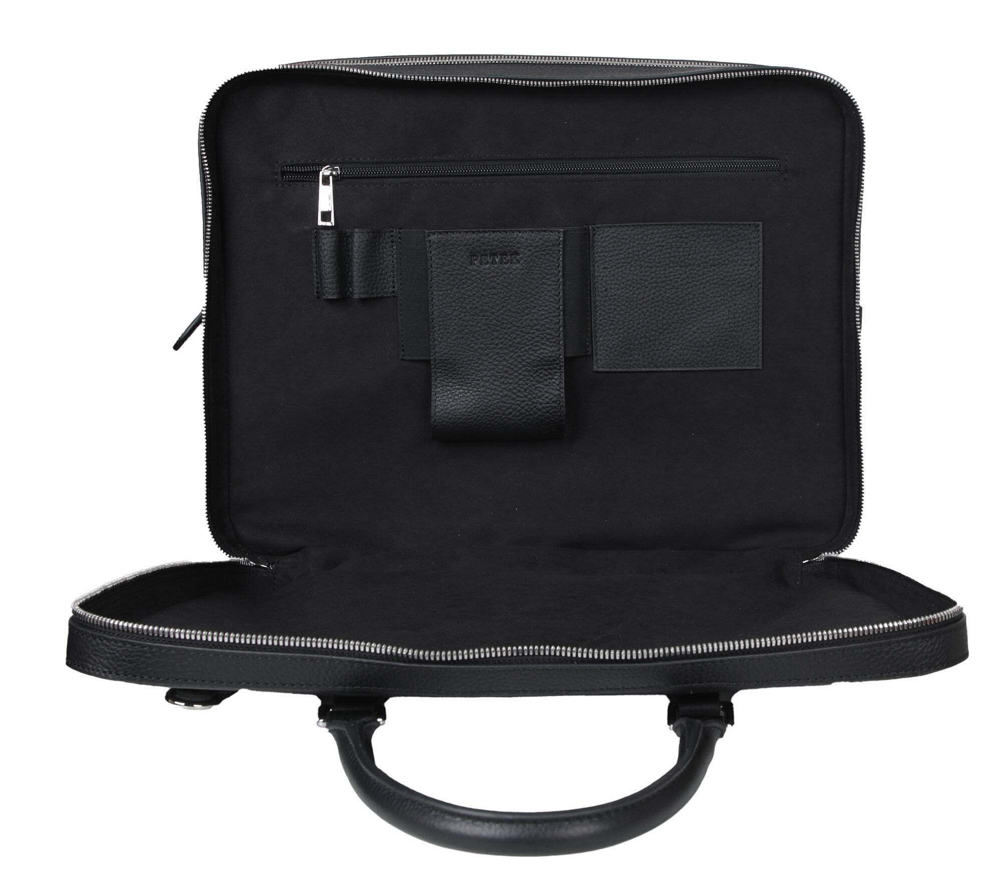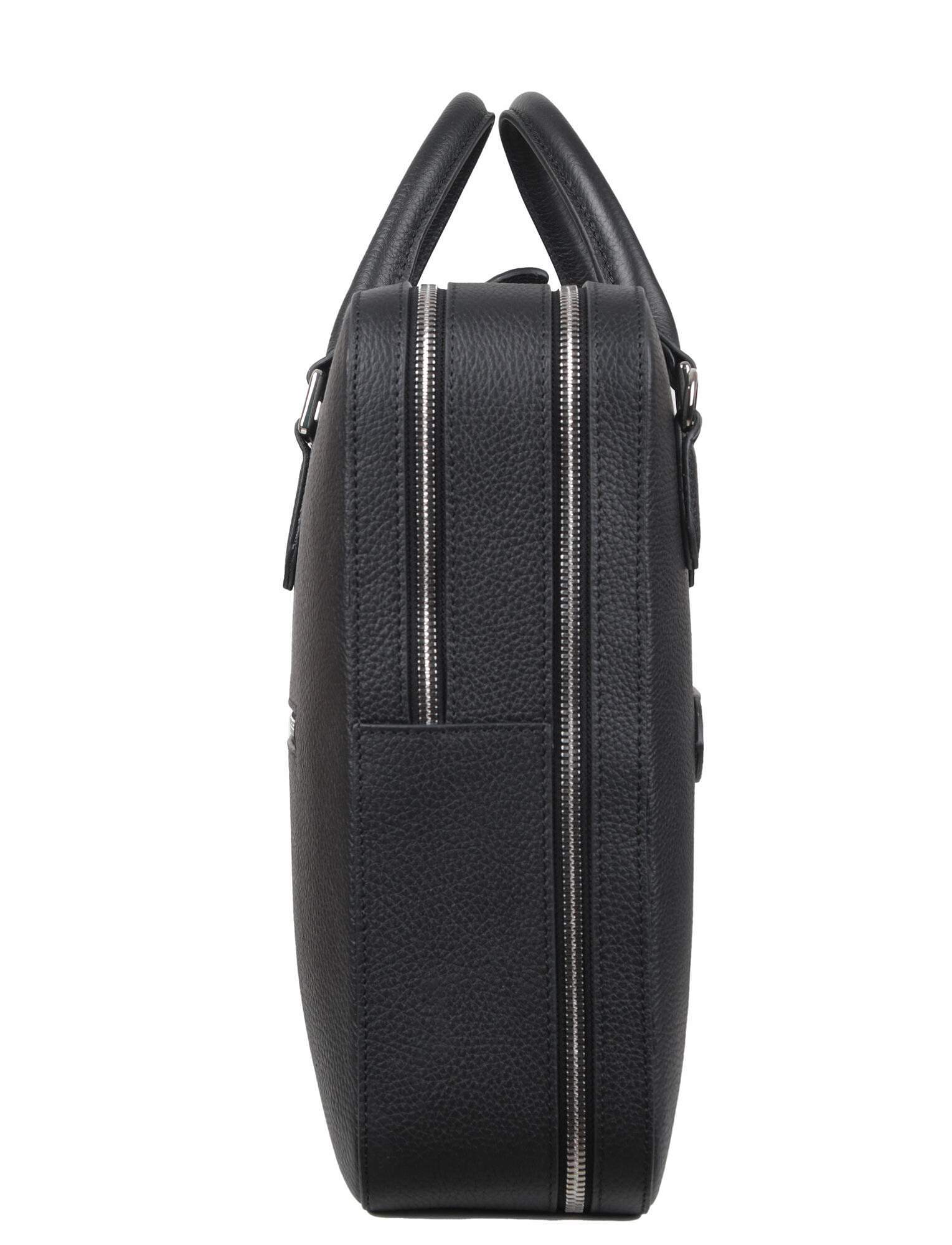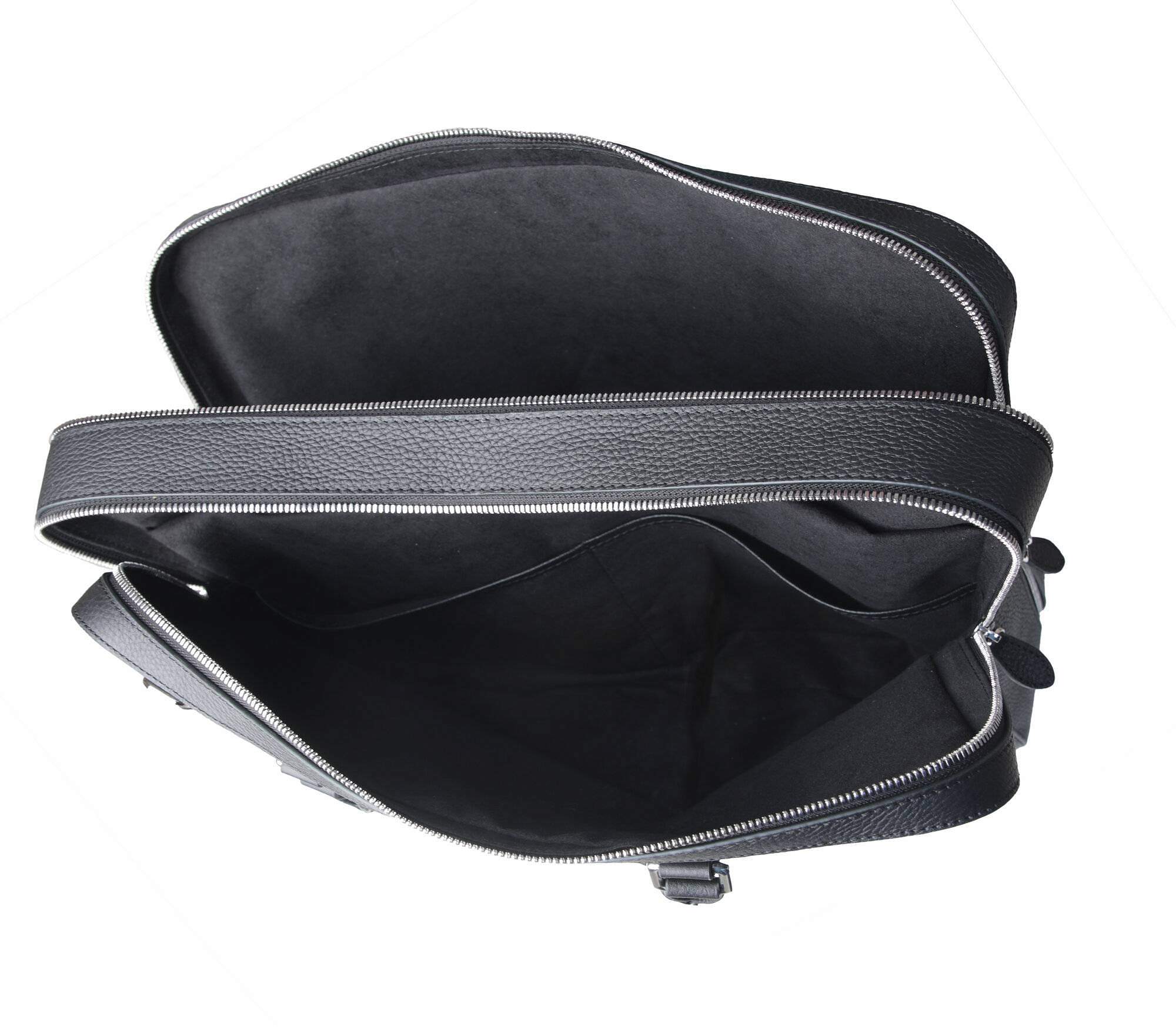 Переднее отделение разделено на две секции и имеет два кармана на разделительном ребре для хранения ключей, документов и других личных вещей формата А4. Заднее отделение открывается до самого низа с помощью молнии и включает одно общее отделение, отделение на молнии, а также отсеки для ручек, мобильного телефона, визиток и кредитных карт (всего пять штук).