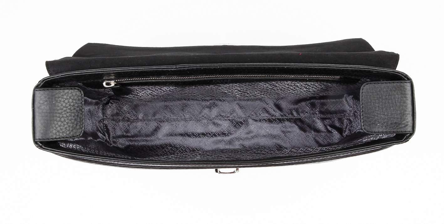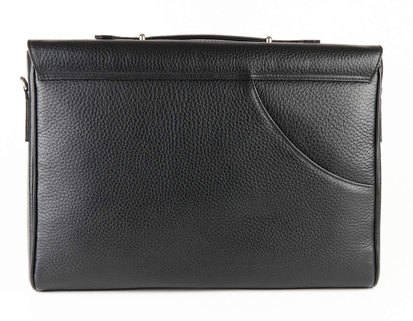 Стильный мужской портфель выполнен из натуральной кожи. Портфель закрывается при помощи клапана на металлический замок. Внутри имеет одно вместительное отделение, содержащее карман на застежке-молнии. Под клапаном расположен карман для бумаг. На задней стенке портфеля расположен дополнительный карман для бумаг. Портфель оснащен удобной ручкой, в комплекте текстильный чехол для хранения и съемный плечевой ремень. Этот стильный аксессуар станет изысканным дополнением к вашему образу. Портфель упакован в коробку с фирменным логотипом.