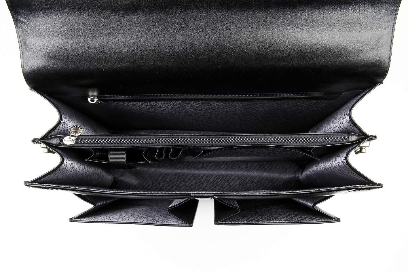 Портфель. Два кодовых замка на 1000 комбинаций, металлические ножки, плечевой ремень. Внутри: два отделения, между которыми отделение на молнии, на задней стенке первого отделения распологается отдел для сотового телефона, три отделения для ручек.