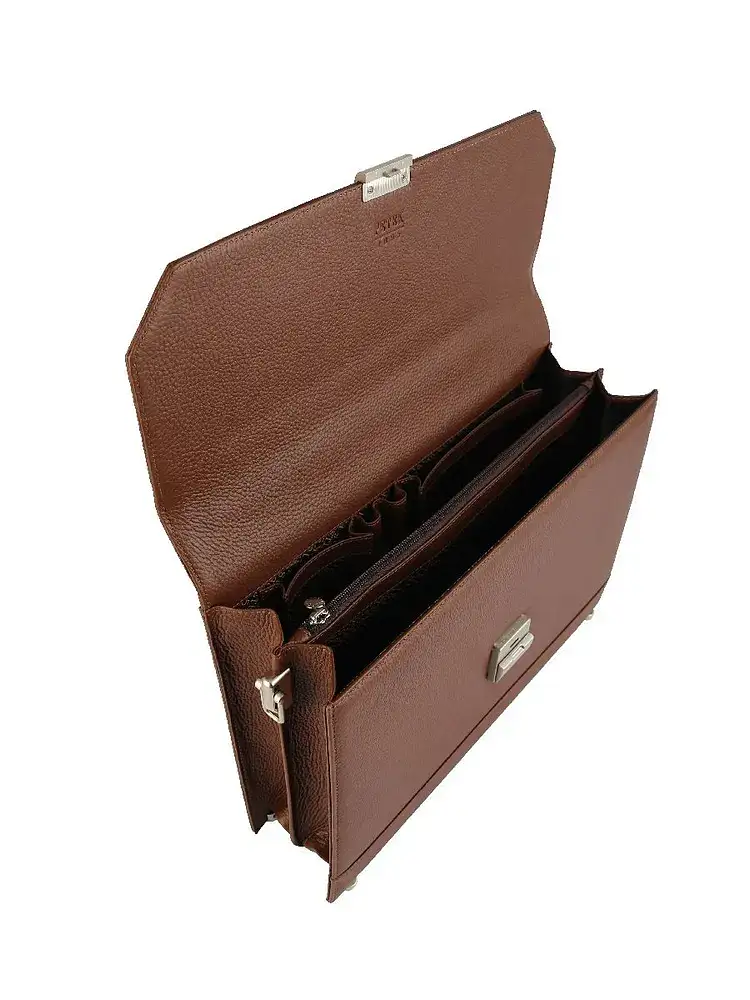 Этот портфель выполнен из натуральной кожи высокого качества, что обеспечивает его долговечность и прочность. Он имеет два отделения, которые позволяют удобно организовать все необходимые вещи, такие как документы, ключи, телефон, ноутбук и т.д. Два кармана на молнии на передней панели обеспечивают быстрый доступ к мелким предметам, таким как деньги или документы. Карман для визиток позволяет всегда иметь под рукой необходимые контакты. В комплекте с портфелем идет плечевой ремень, что особенно удобно в условиях городской жизни, когда нет возможности использовать руки. Такой портфель будет отличным выбором для деловых людей, которые ценят качество и комфорт.