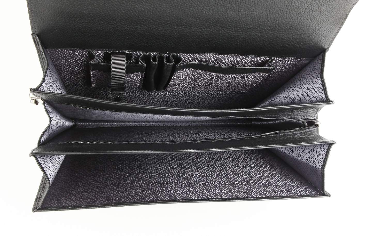 Мужской портфель Petek из натуральной кожи: 3 отделения (одно на молнии), 2 отделения для бумаг, отделение для ручек, визитных карт. Плечевой ремень.