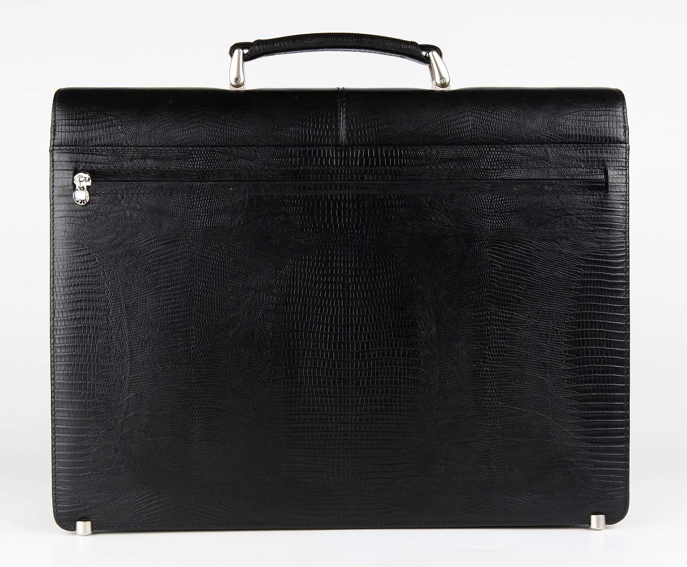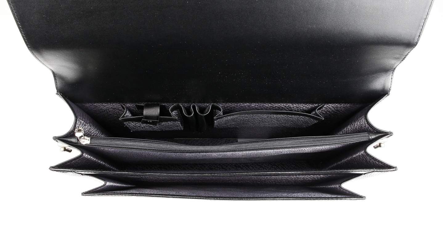 Этот портфель представляет собой классическую модель, выполненную из высококачественных материалов. Он имеет два основных отделения и отделение на молнии для хранения документов. Кроме того, портфель оснащен дополнительным карманом, отделением для ручек и визитных карточек, а также задним карманом на молнии для мелких предметов. Портфель закрывается с помощью кодового замка, что обеспечивает сохранность содержимого. Металлическая фурнитура и небольшие металлические ножки придают модели устойчивость и прочность. В комплекте с портфелем идет плечевой ремень для удобства переноски.