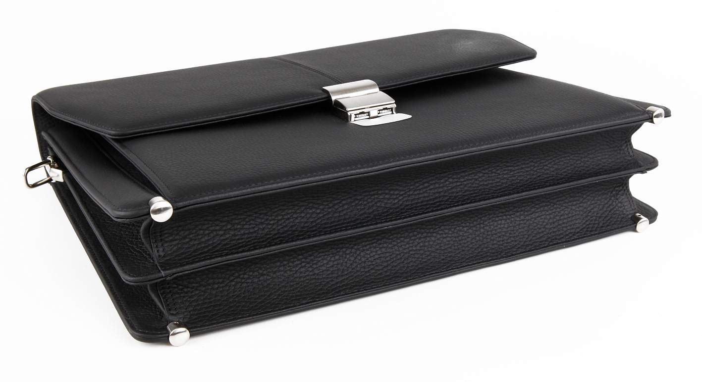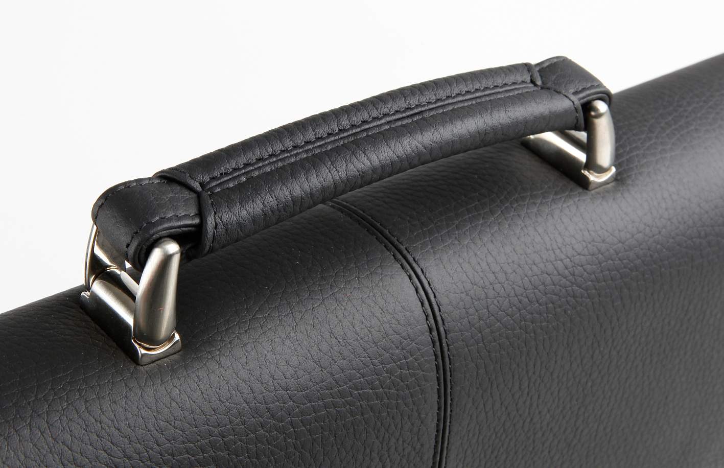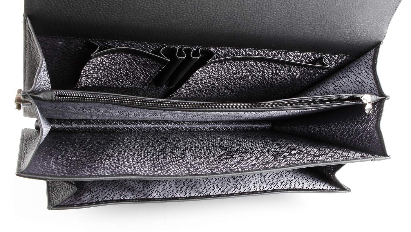 Удобный и вместительный портфель из натуральной кожи. Классическая модель, ничего лишнего, в то же время имеется всё необходимое: два больших отделения, отделение на молнии для бумаг, дополнительный карман, отделение для ручек, визиток. Сзади - карман на молнии. Портфель закрывается на кодовый замок, что гарантирует сохранность содержимого. Матовая металлическая фурнитура придает модели дополнительную респектабельность, а небольшие металлические ножки - дополнительную устойчивость. Для удобства ношения к портфелю в комплекте прилагается плечевой ремень.