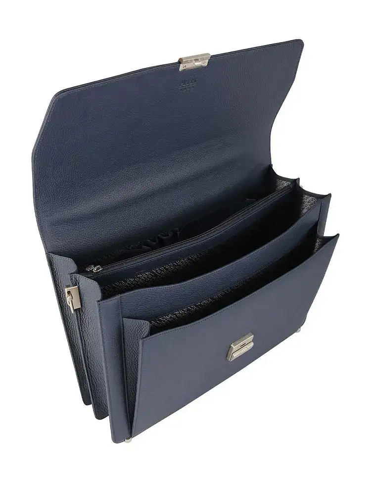 Удобный и вместительный портфель из натуральной кожи. Классическая модель, ничего лишнего, в то же время имеется всё необходимое: два больших отделения, отделение на молнии для бумаг, дополнительный карман, отделение для ручек, визиток. Сзади - карман на молнии. Портфель закрывается на кодовый замок, что гарантирует сохранность содержимого. Матовая металлическая фурнитура придает модели дополнительную респектабельность, а небольшие металлические ножки - дополнительную устойчивость. Для удобства ношения к портфелю в комплекте прилагается плечевой ремень.