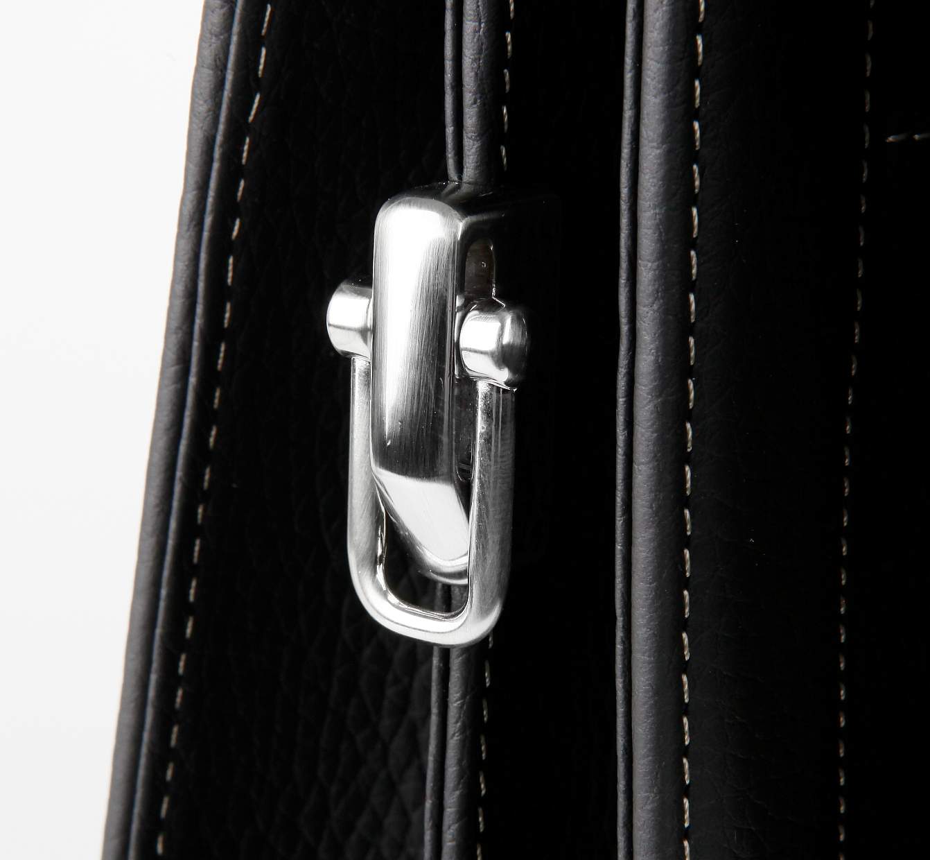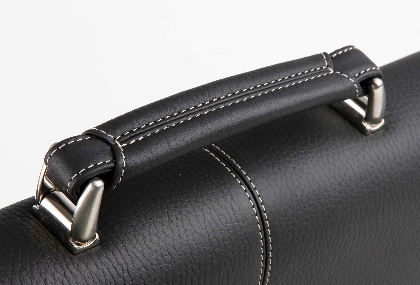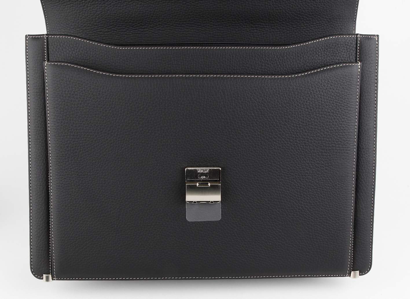 Удобный и вместительный портфель из натуральной кожи. Классическая модель, ничего лишнего, в то же время имеется всё необходимое: два больших отделения, отделение на молнии для бумаг, дополнительный карман, отделение для ручек, визиток. Сзади - карман на молнии. Портфель закрывается на кодовый замок, что гарантирует сохранность содержимого. Матовая металлическая фурнитура придает модели дополнительную респектабельность, а небольшие металлические ножки - дополнительную устойчивость. Для удобства ношения к портфелю в комплекте прилагается плечевой ремень.