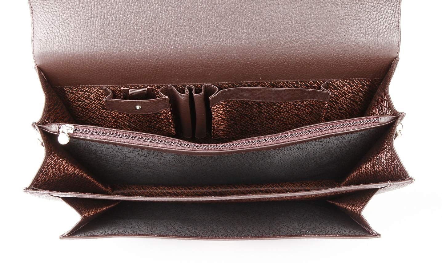 Удобный и вместительный портфель из натуральной кожи различных цветов и фактуры. Классическая модель, ничего лишнего, в то же время имеется всё необходимое: два больших отделения, отделение на молнии для бумаг, дополнительный карман, отделение для ручек, визиток. Сзади - карман на молнии. Портфель закрывается на кодовый замок, что гарантирует сохранность содержимого. Матовая металлическая фурнитура придает модели дополнительную респектабельность, а небольшие металлические ножки - дополнительную устойчивость. Для удобства ношения к портфелю в комплекте прилагается плечевой ремень. Размер портфеля: 40х30х9 см.