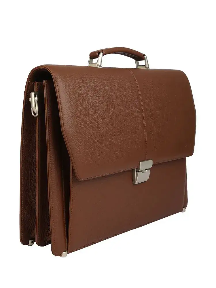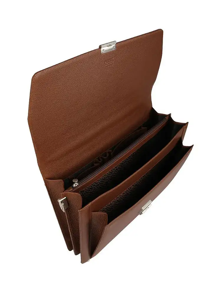 Удобный и вместительный портфель из натуральной кожи. Классическая модель, ничего лишнего, в то же время имеется всё необходимое: два больших отделения, отделение на молнии для бумаг, дополнительный карман, отделение для ручек, визиток. Сзади - карман на молнии. Портфель закрывается на кодовый замок, что гарантирует сохранность содержимого. Матовая металлическая фурнитура придает модели дополнительную респектабельность, а небольшие металлические ножки - дополнительную устойчивость. Для удобства ношения к портфелю в комплекте прилагается плечевой ремень.