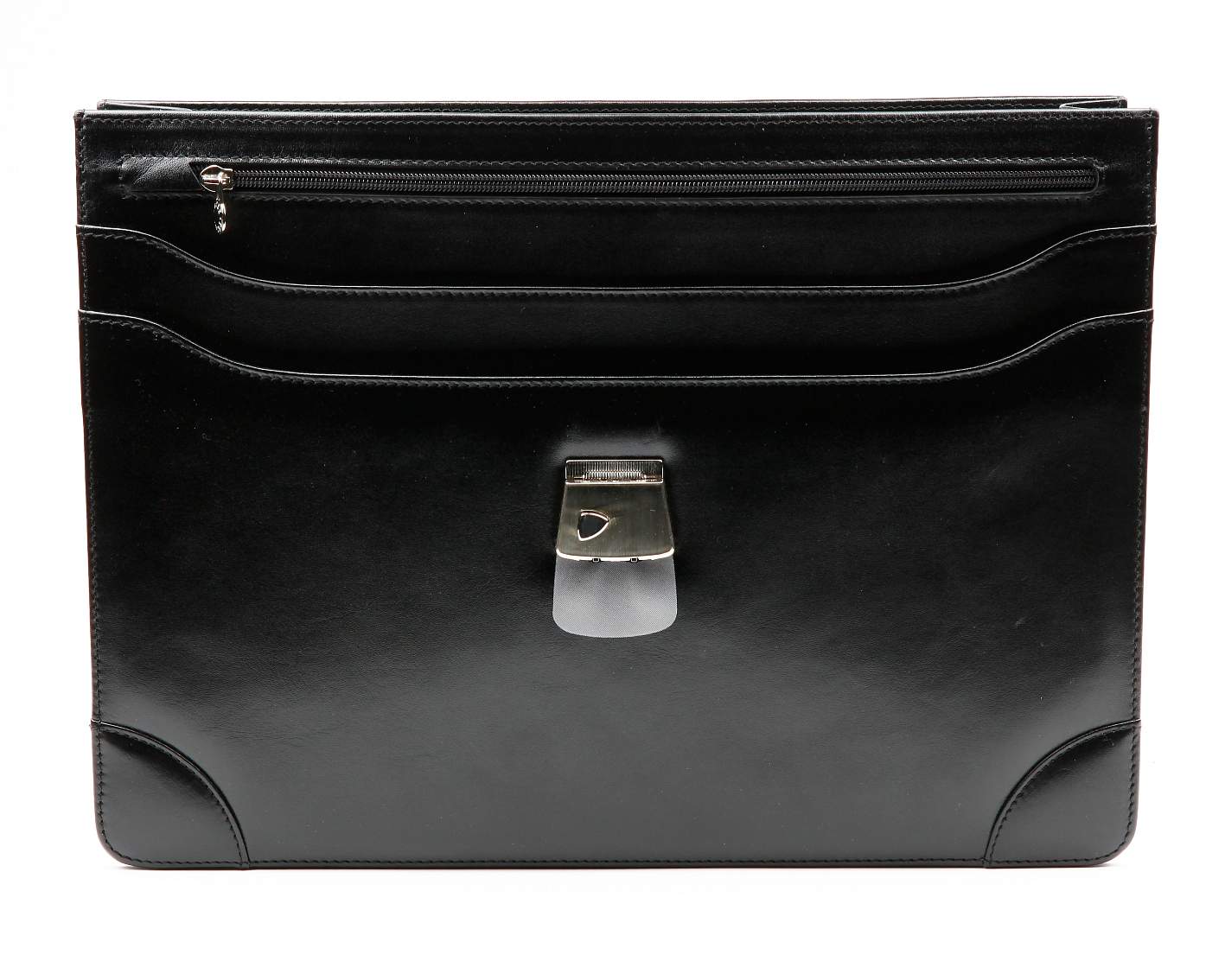 Утонченный и изысканный портфель для тех, кто предпочитает всегда быть в тренде. Лаконичное внутреннее пространство позволяет всегда иметь под рукой все самое необходимое. Одно большое отделение внутри, также два узких кармана для деловых бумаг и одно отделение на молнии. Внутри на задней стенке расположен бизнес-блок: карман для мобильного телефона, один карман для органайзера или портмоне и держатель для ручек. Портфель закрывается на кодовый замок. Фурнитура выполнена под золото или под серебро, в зависимости от цвета модели. К портфелю прилагается наплечный ремень из натуральной кожи.