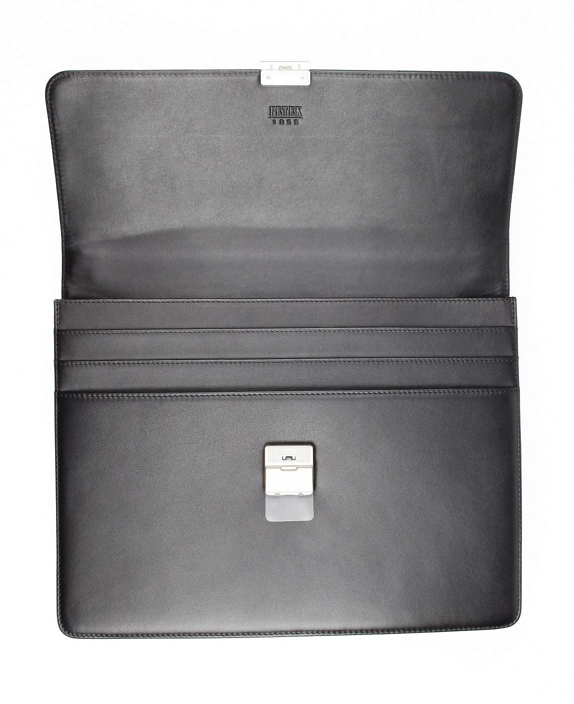 Портфель из натуральной кожи великолепной выделки. Элегантная и компактная модель для солидных деловых людей, предпочитающих классический стиль и строгие формы, подчеркнет статус своего владельца. Внутри имеется основной отдел для бумаг, отделение на молнии на задней стенке, а также держатель для ручек, специальный карман для мобильного телефона и объемный карман для записной книжки или кошелька. Перед основным отделением имеются три дополнительных отдела для документов и бумаг. На оборотной стороне портфеля – карман на молнии. Сохранность важных документов гарантирует надежный кодовый замок, изготовленный в Швейцарии из легированной стали специально для PETEK 1855 В комплекте кожаный плечевой ремень.