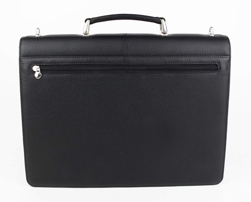 Портфель из натуральной кожи великолепной выделки. Элегантная и компактная модель для солидных деловых людей, предпочитающих классический стиль и строгие формы, подчеркнет статус своего владельца. Внутри имеется основной отдел для бумаг, отделение на молнии на задней стенке, а также держатель для ручек, специальный карман для мобильного телефона и объемный карман для записной книжки или кошелька. Перед основным отделением имеются три дополнительных отдела для документов и бумаг. На оборотной стороне портфеля – карман на молнии. Сохранность важных документов гарантирует надежный кодовый замок, изготовленный в Швейцарии из легированной стали специально для PETEK 1855 В комплекте кожаный плечевой ремень.