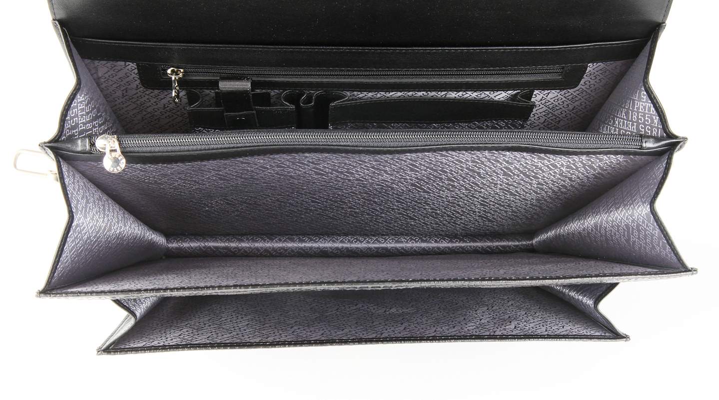 Мужской портфель Petek из натуральной кожи. 2 отделения и дополнительный карман, внутри 2 кармана, 2 отделения на молнии, карман для ручек, визиток. В комплекте плечевой ремень.