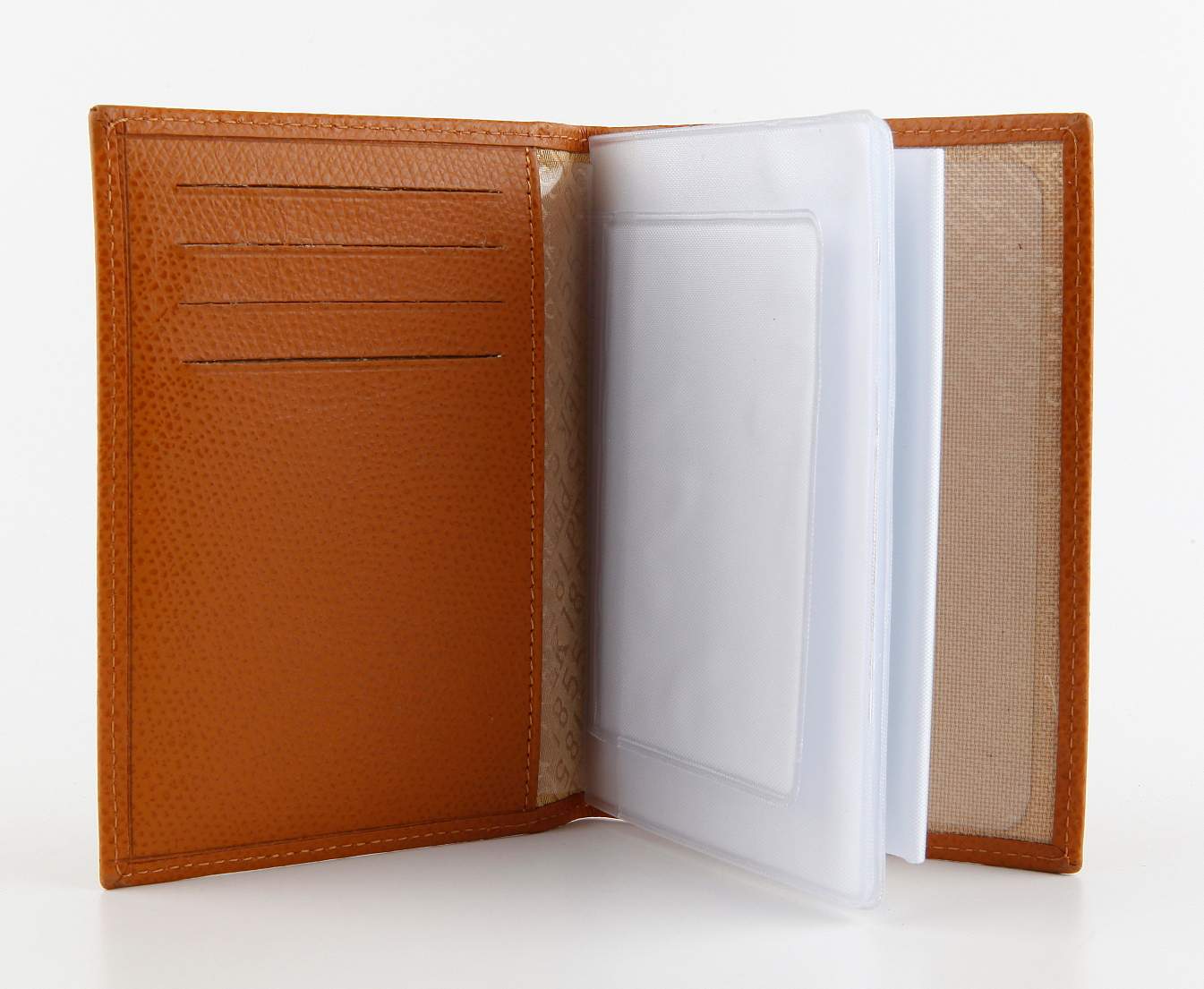 Обложка для автодокументов из превосходной кожи. Удобная и функциональная модель. В этой модели предусмотрены прорези для четырех кредитных карт, прозрачный кармашек для прав и съемный блок для документов, состоящий из несколько прозрачных страниц.