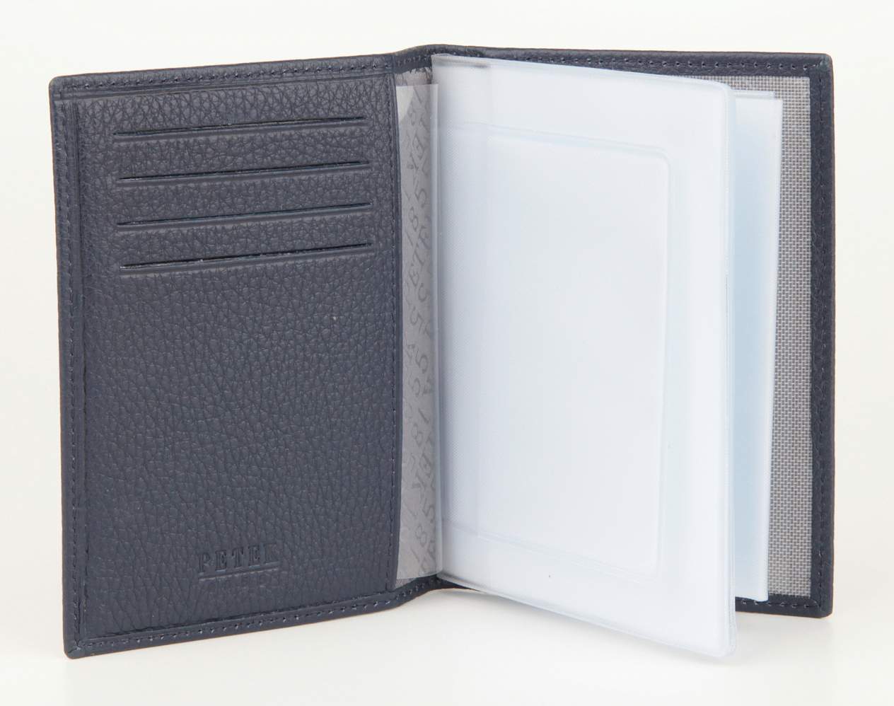 Обложка для автодокументов из превосходной кожи. Удобная и функциональная модель. В этой модели предусмотрены прорези для четырех кредитных карт, прозрачный кармашек для прав и съемный блок для документов, состоящий из несколько прозрачных страниц.