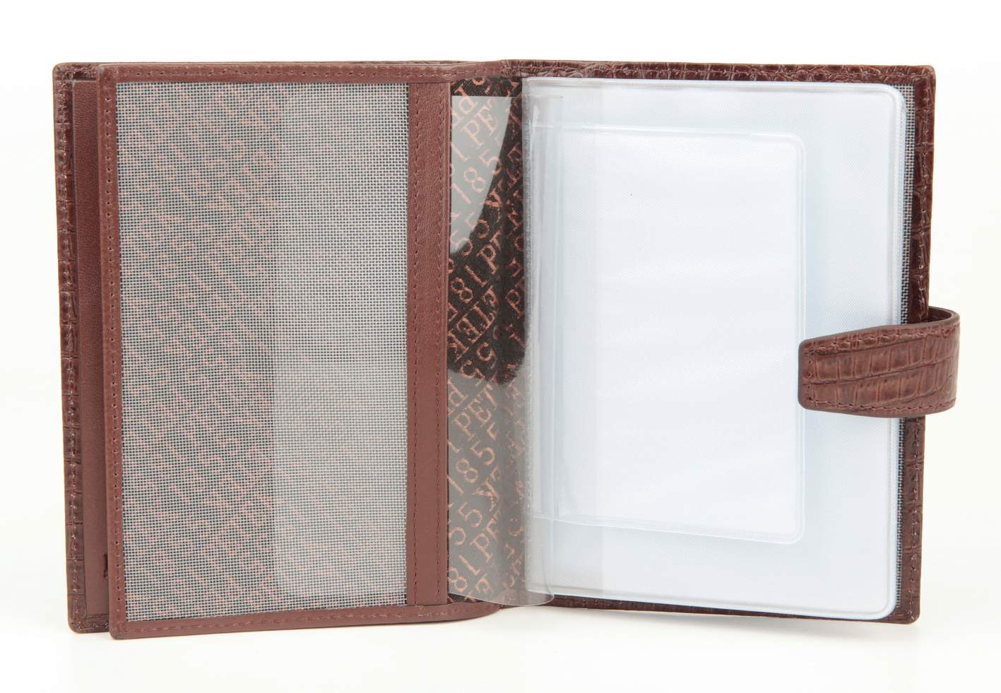 Обложка для паспорта и автодокументов из натуральной кожи. Многофункциональная и невероятно практичная модель. Паспорт и все документы на автомобиль – в одном месте! Эта модель снабжена специальным отделением для паспорта, прозрачным кармашком для прав, съемным блоком для документов из нескольких прозрачных страниц. Обложка застегивается на кнопку.