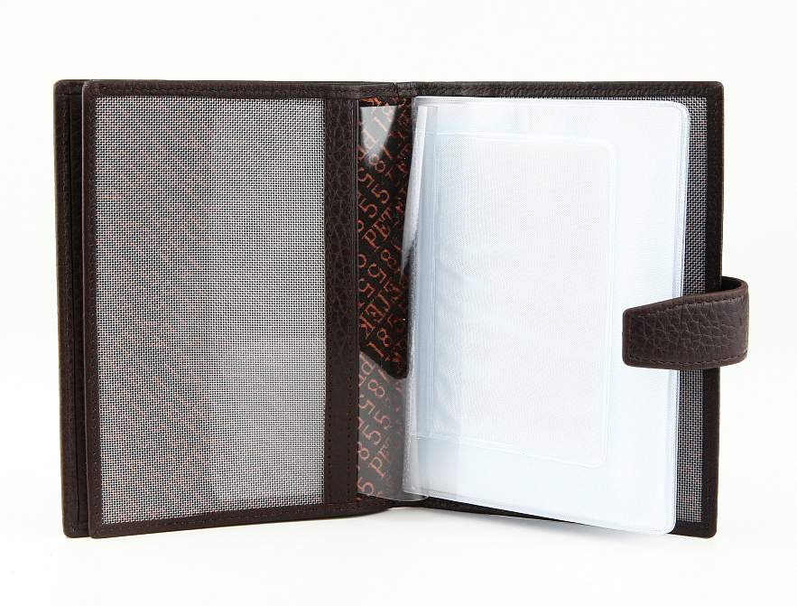 Обложка для паспорта и автодокументов из натуральной кожи. Многофункциональная и невероятно практичная модель. Паспорт и все документы на автомобиль – в одном месте! Эта модель снабжена специальным отделением для паспорта, прозрачным кармашком для прав, съемным блоком для документов из нескольких прозрачных страниц. Обложка застегивается на кнопку.