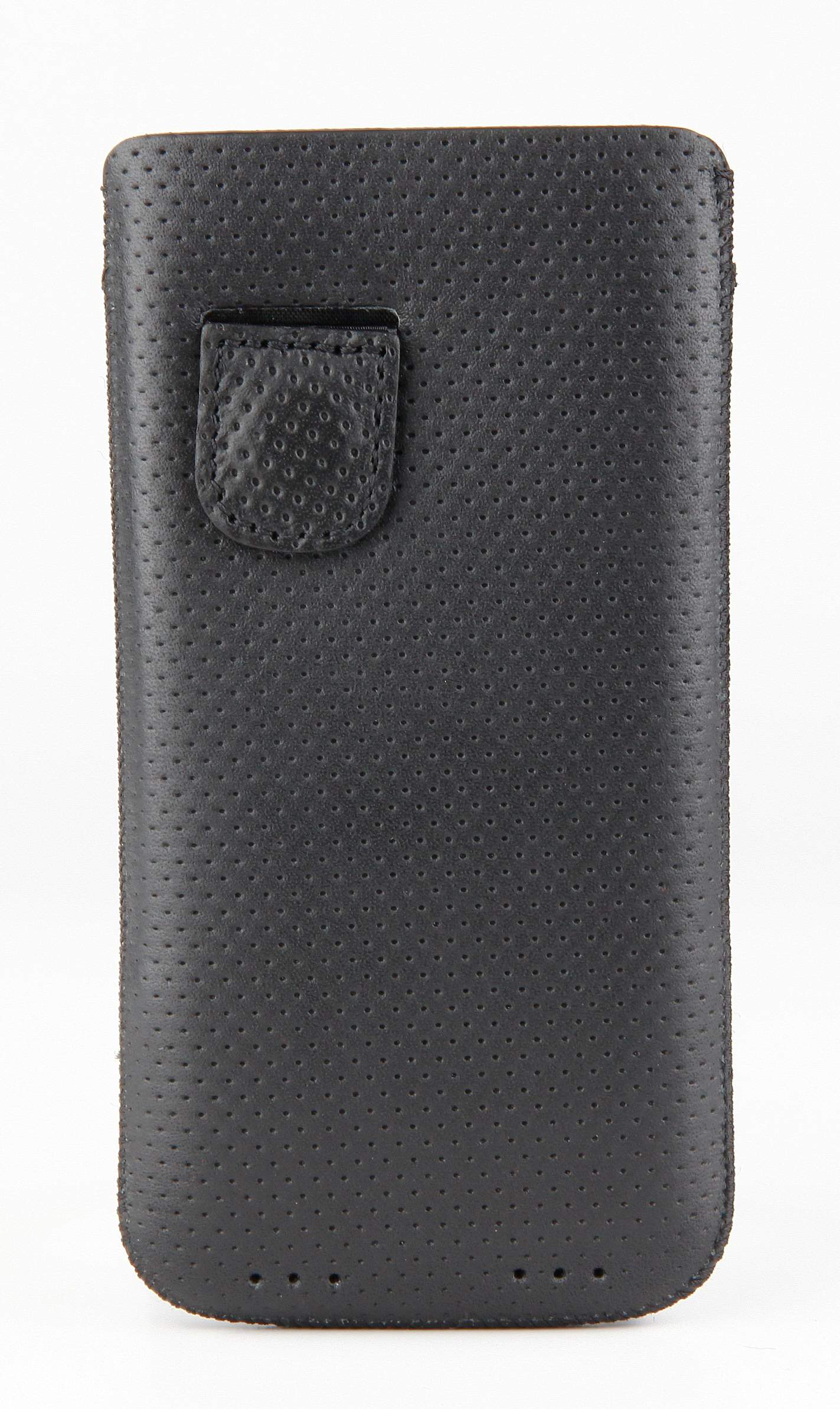 Классический чехол для телефона черного цвета с перфорацией. Телефон располагается в компактном эргономичном чехле . На лицевой стороне - стильный металлический логотип PETEK На обратной стороне- хлястик, помогающий достать телефон из чехла. Упаковка: фирменная коробка-блистер