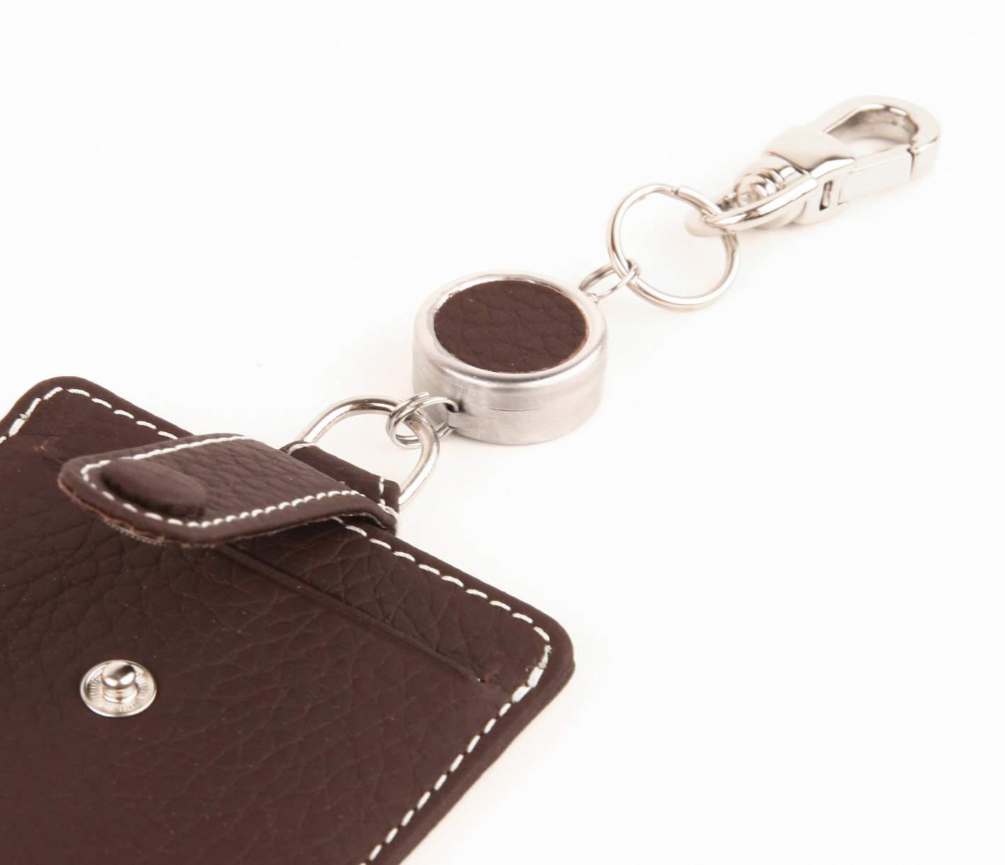 Бейдж - неотъемлемый атрибут любого офиса или компании, является визитной карточкой сотрудника. Бейдж для пропуска и карты Petek выполнен из натуральной кожи. Бейдж имеет закругленные углы, что обеспечивает износостойкость и опрятный внешний вид. Крепится на одежду с помощью металлического карабина