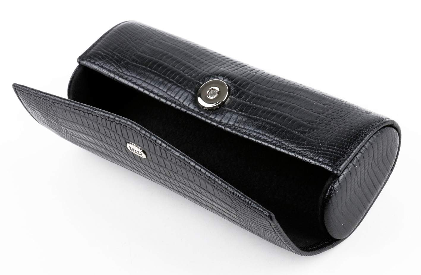 Стильный кожаный футляр для очков Petek. Жесткий каркас не позволит сломаться Вашим очкам. Внутренняя поверхность изделия выполнена из бархатистой ткани, что позволит защитить очки от механических повреждений.