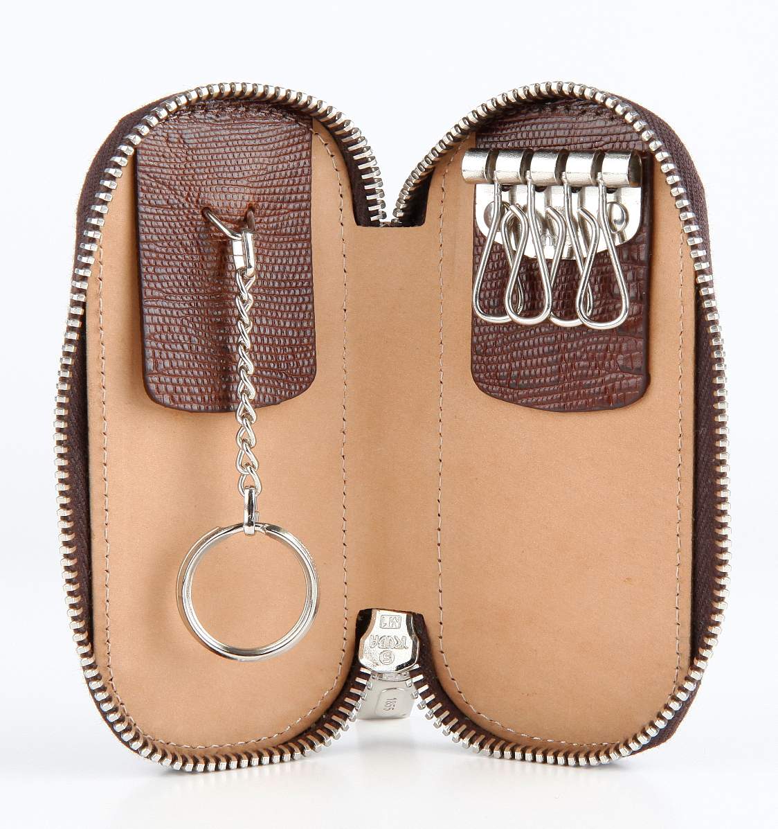 Мужская ключница Petek из натуральной кожи. Закрывается на молнию по периметру. Внутри: кольцо (на цепочке) для ключей, четыре держателя для ключей.