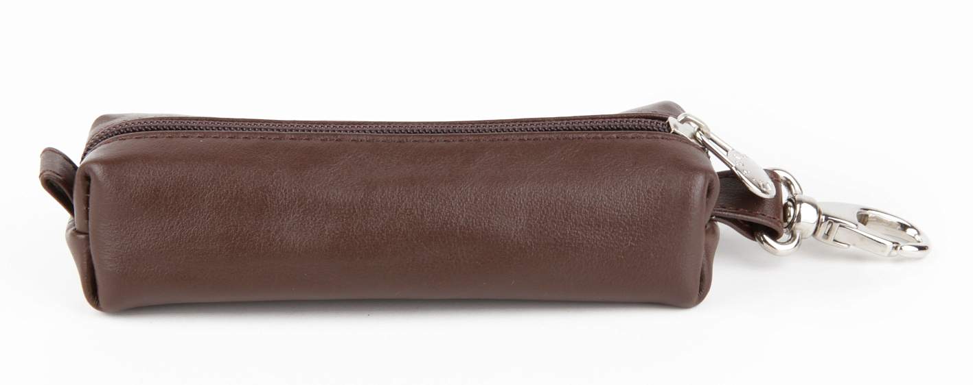 Ключница из натуральной кожи Petek обеспечивает безопасное и удобное хранение ваших ключей. Она закрывается на молнию, а внутри ключницы расположены два металлических кольца для ключей на цепочках. Снаружи ключницы, на одной из ее боковых сторон, имеется карабин для удобного ношения на поясе. Этот стильный и функциональный аксессуар позволит вам всегда иметь доступ к своим ключам и при этом сохранять их в безопасности.