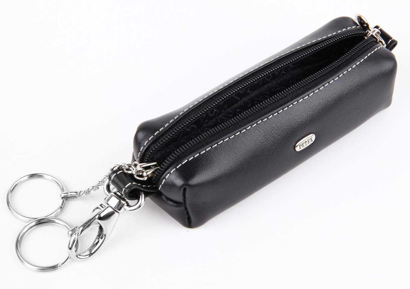 Ключница из натуральной кожи Petek обеспечивает безопасное и удобное хранение ваших ключей. Она закрывается на молнию, а внутри ключницы расположены два металлических кольца для ключей на цепочках. Снаружи ключницы, на одной из ее боковых сторон, имеется карабин для удобного ношения на поясе. Этот стильный и функциональный аксессуар позволит вам всегда иметь доступ к своим ключам и при этом сохранять их в безопасности.