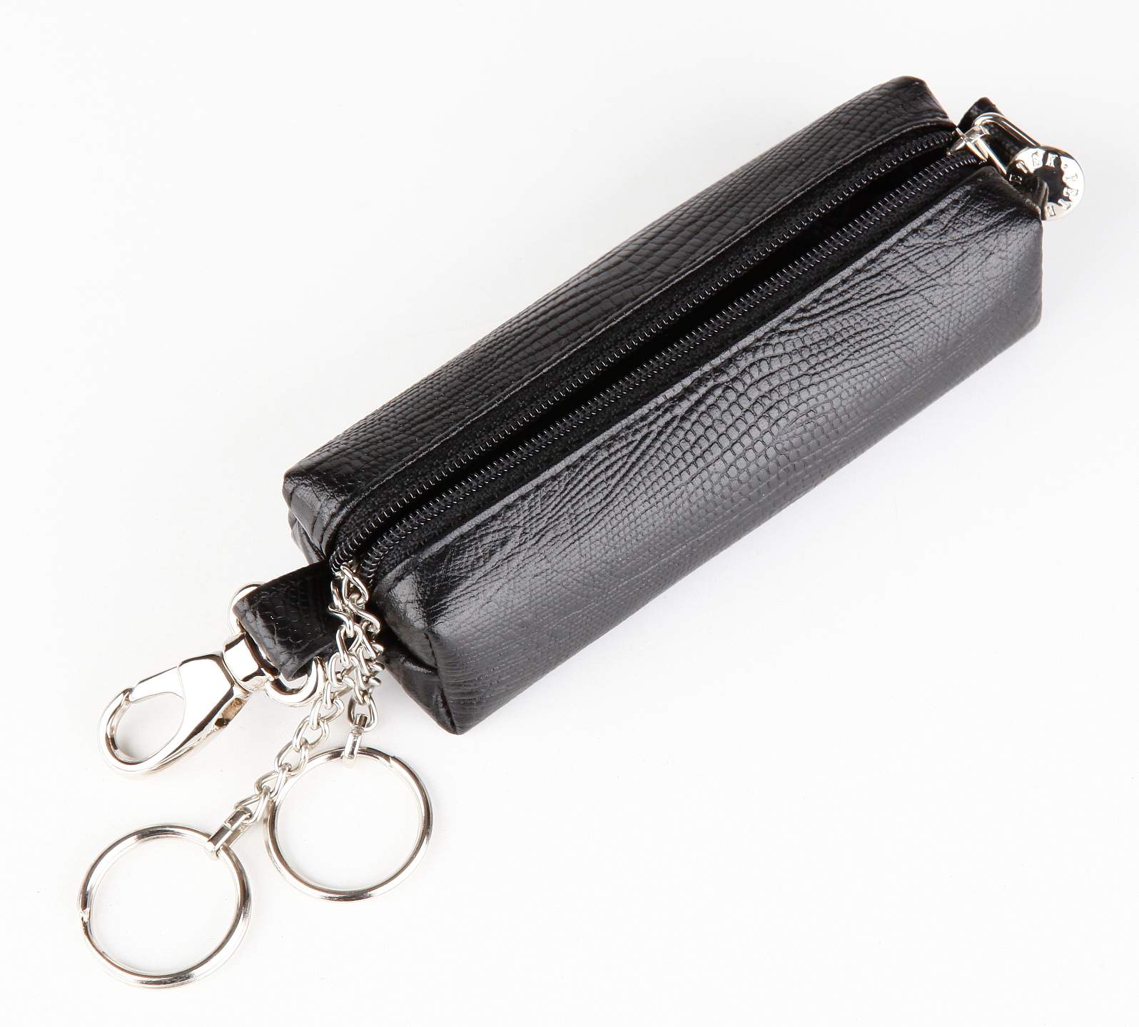 Ключница из натуральной кожи Petek обеспечивает безопасное и удобное хранение ваших ключей. Она закрывается на молнию, а внутри ключницы расположены два металлических кольца для ключей на цепочках. Снаружи ключницы, на одной из ее боковых сторон, имеется карабин для удобного ношения на поясе. Этот стильный и функциональный аксессуар позволит вам всегда иметь доступ к своим ключам и при этом сохранять их в безопасности.