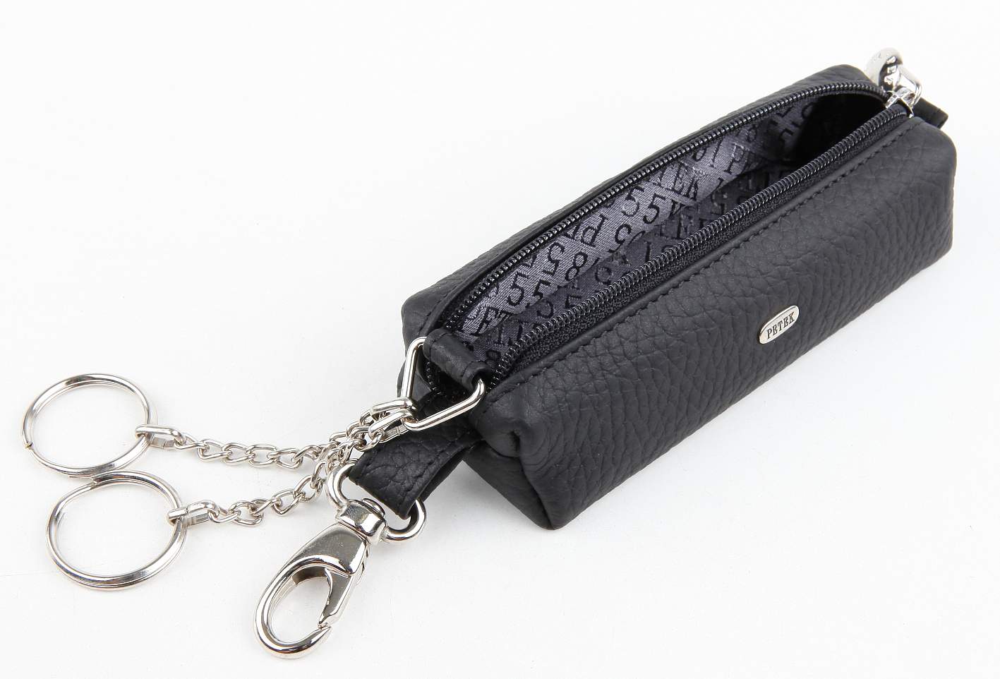 Ключница из натуральной кожи Petek обеспечивает безопасное и удобное хранение ваших ключей. Она закрывается на молнию, а внутри ключницы расположены два металлических кольца для ключей на цепочках. Снаружи ключницы, на одной из ее боковых сторон, имеется карабин для удобного ношения на поясе. Этот стильный и функциональный аксессуар позволит вам всегда иметь доступ к своим ключам и при этом сохранять их в безопасности.
