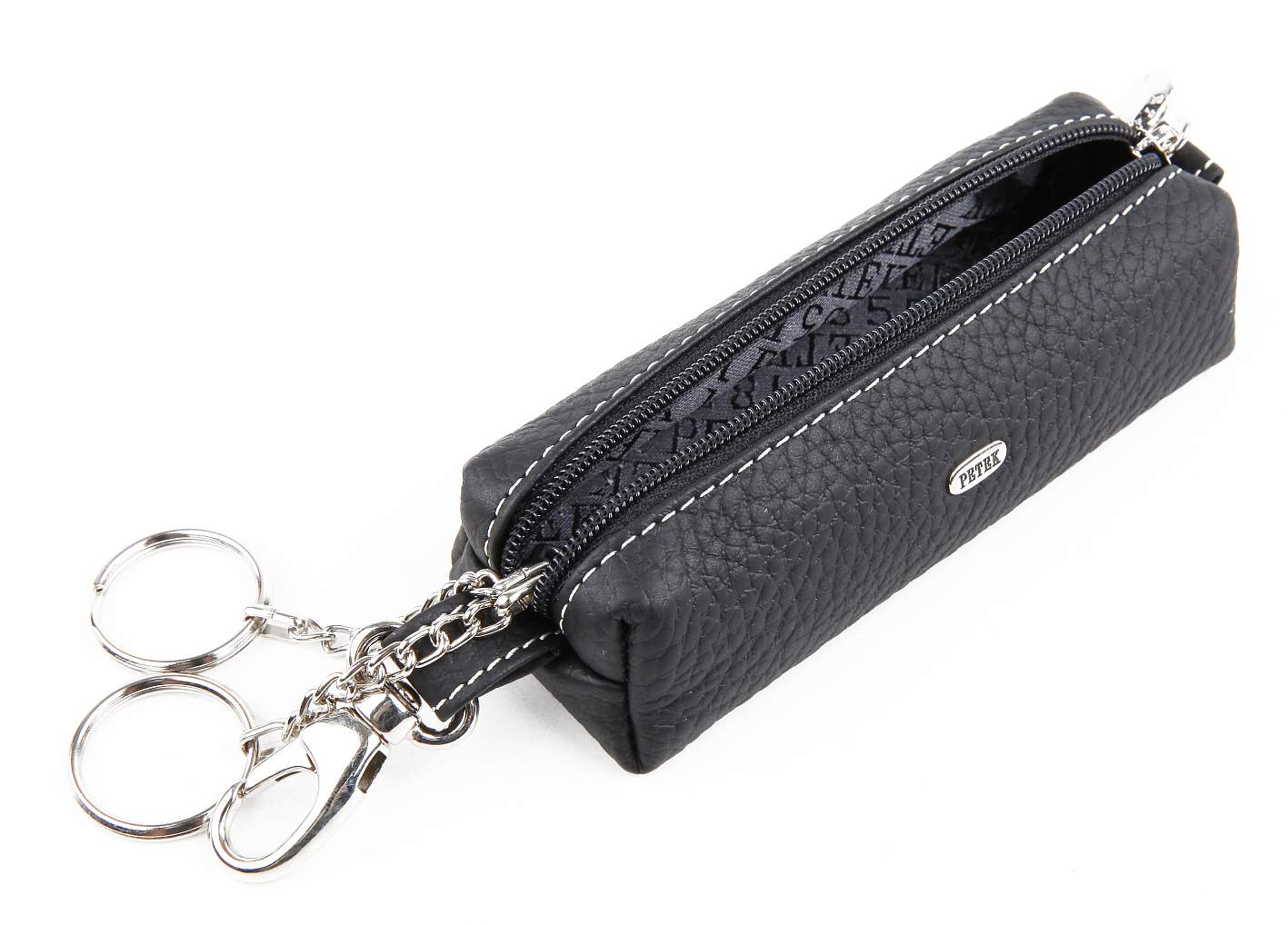 Ключница из натуральной кожи Petek обеспечивает безопасное и удобное хранение ваших ключей. Она закрывается на молнию, а внутри ключницы расположены два металлических кольца для ключей на цепочках. Снаружи ключницы, на одной из ее боковых сторон, имеется карабин для удобного ношения на поясе. Этот стильный и функциональный аксессуар позволит вам всегда иметь доступ к своим ключам и при этом сохранять их в безопасности.
