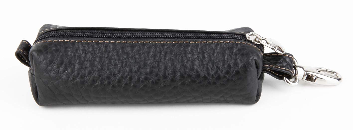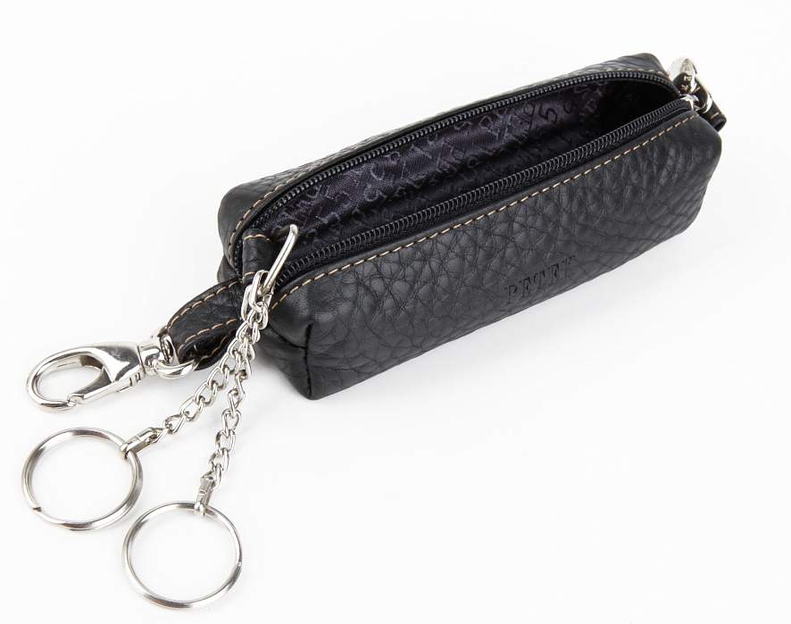 Ключница из натуральной кожи. Закрывается на молнию, внутри кольцо держатель для ключей. Снаружи карабин для ношения на поясе.