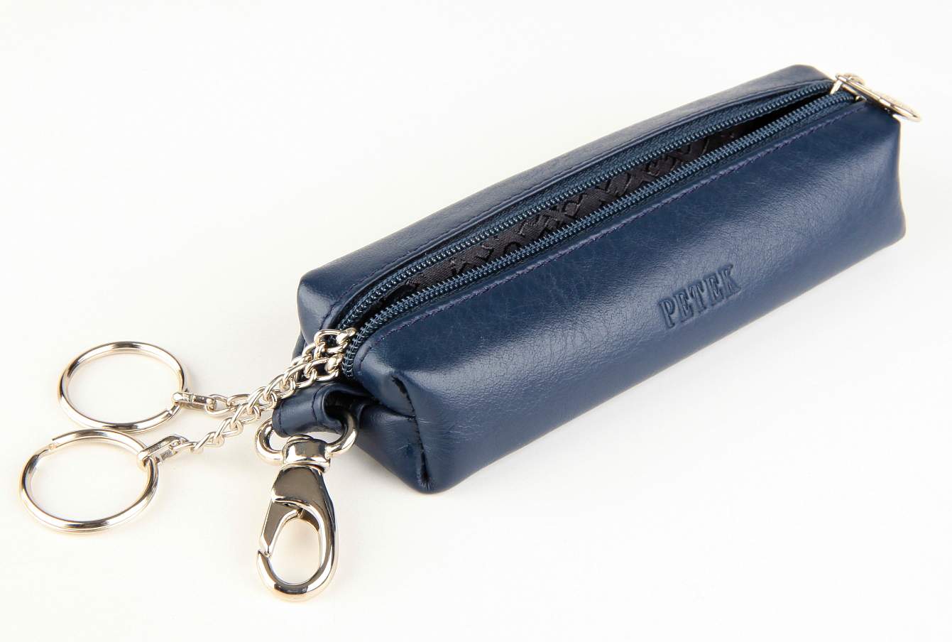 Ключница из натуральной кожи Petek . Закрывается на молнию, внутри кольцо держатель для ключей. Снаружи карабин для ношения на поясе.