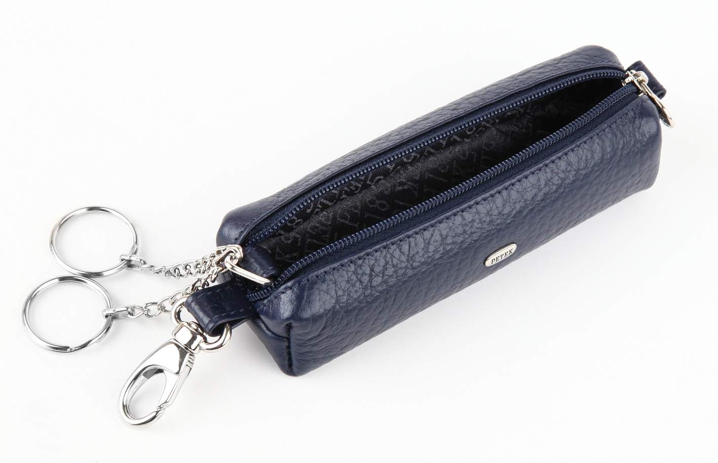Ключница из натуральной кожи Petek обеспечивает безопасное и удобное хранение ваших ключей. Она закрывается на молнию, а внутри ключницы расположены два металлических кольца для ключей на цепочках. Снаружи ключницы, на одной из ее боковых сторон, имеется карабин для удобного ношения на поясе. Этот стильный и функциональный аксессуар позволит вам всегда иметь доступ к своим ключам и при этом сохранять их в безопасности.