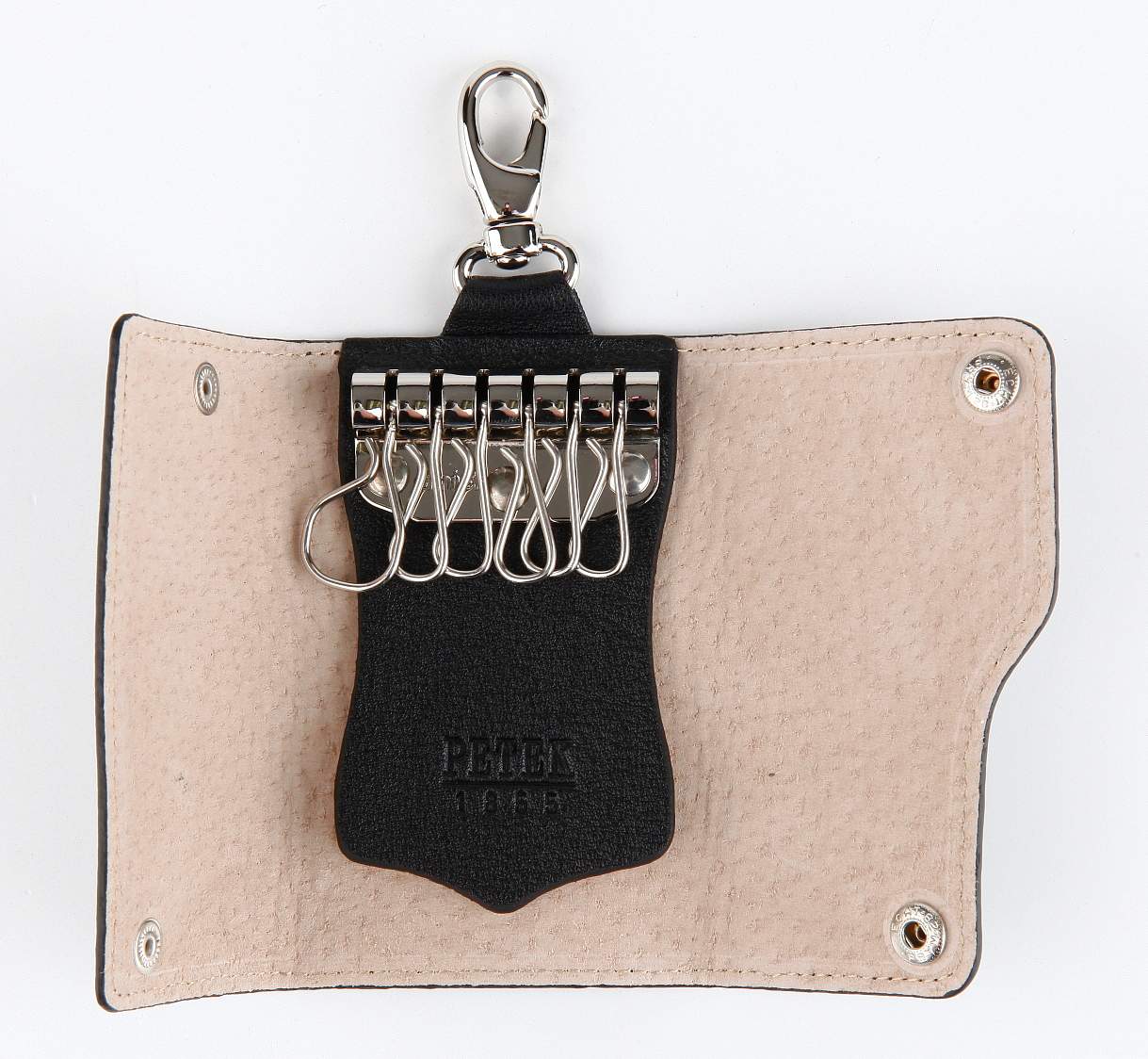 Вместительная кожаная ключница Petek. Закрывается широким клапаном на двух кнопках. Внутри: шесть держателей для ключей.