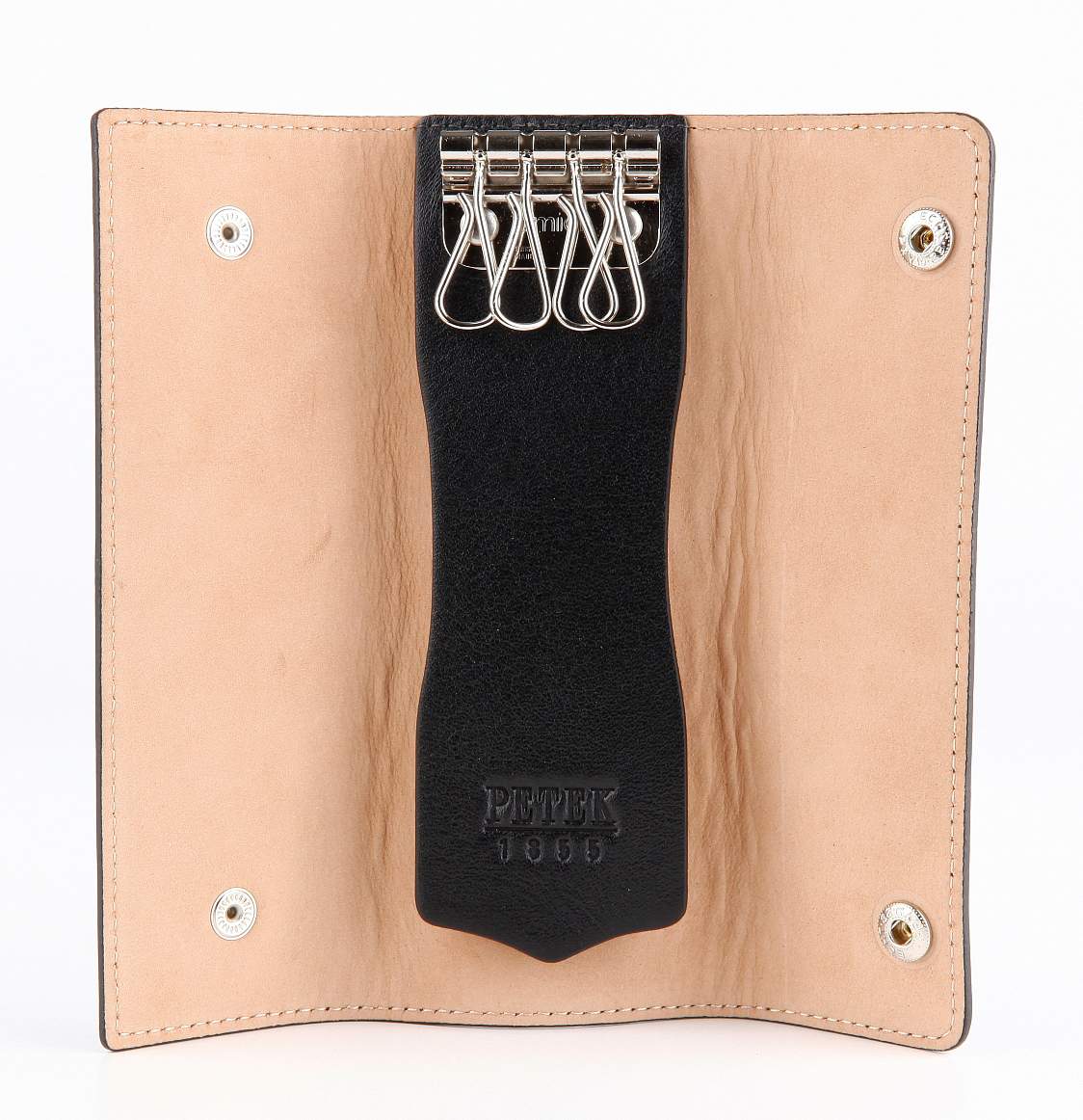 Современная мужская ключница Petek из натуральной кожи. Застегивается на две кнопки, четыре держателя для ключей.