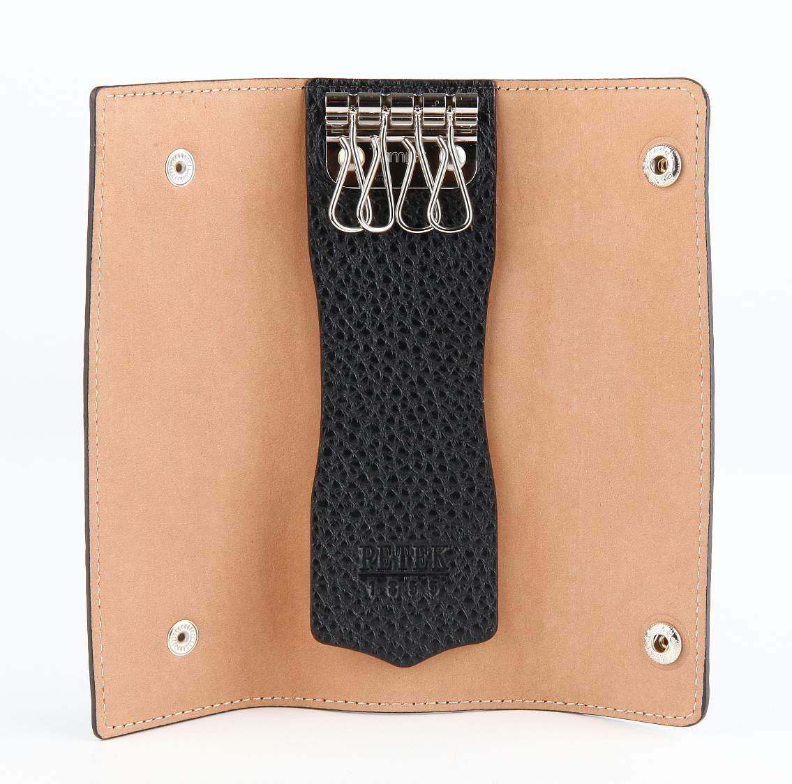 Современная мужская ключница Petek из натуральной кожи. Застегивается на две кнопки, четыре держателя для ключей.