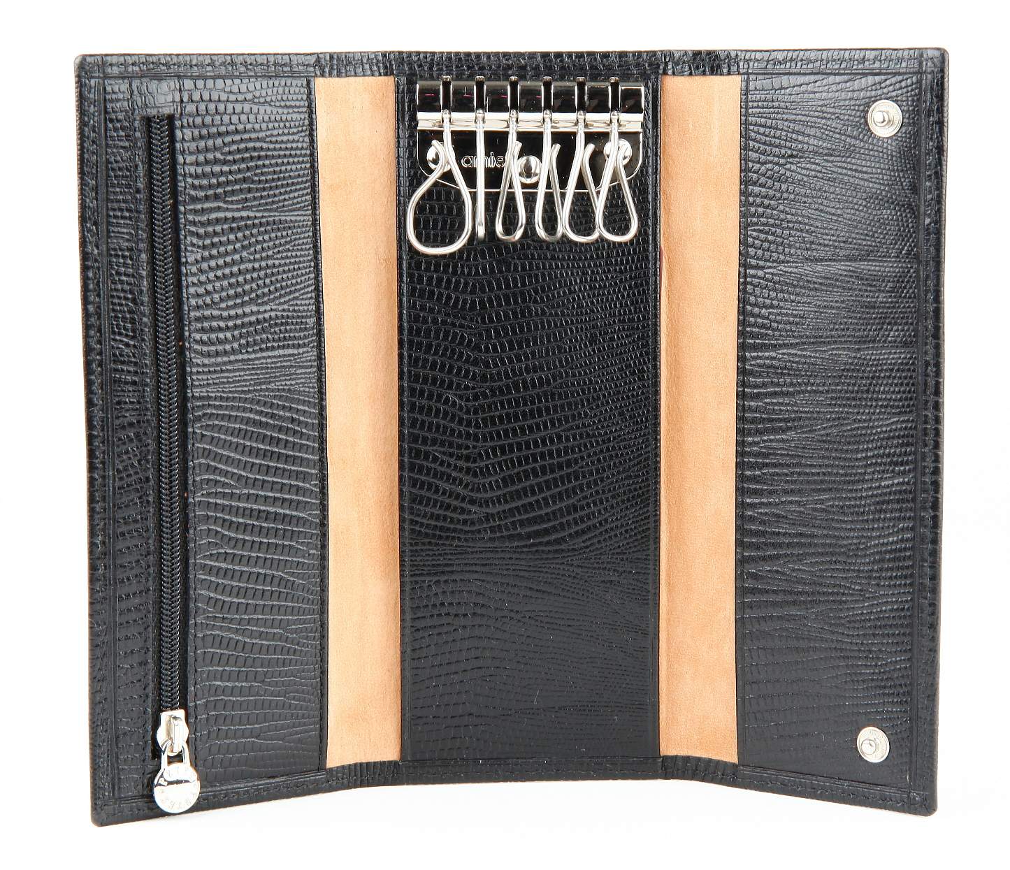 Ключница Petek изготовлена из натуральной кожи высокого качества. Модель закрывается на кнопку, обеспечивая безопасность ключей. Внутри ключницы расположено 6 карабинов для ключей и дополнительный кармашек на молнии для мелочи или других предметов. С этой ключницей ваши ключи будут всегда на своем месте, и вы сможете легко найти нужный ключ.