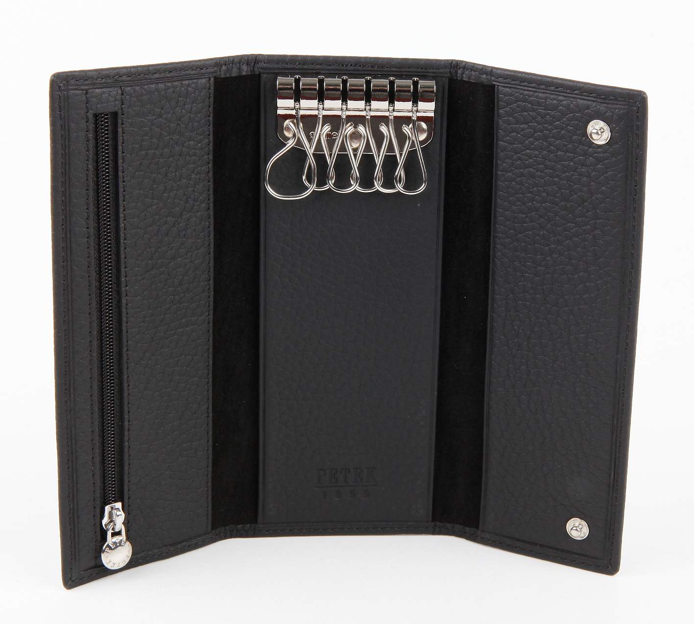 Ключница Petek изготовлена из натуральной кожи высокого качества. Модель закрывается на кнопку, обеспечивая безопасность ключей. Внутри ключницы расположено 6 карабинов для ключей и дополнительный кармашек на молнии для мелочи или других предметов. С этой ключницей ваши ключи будут всегда на своем месте, и вы сможете легко найти нужный ключ.