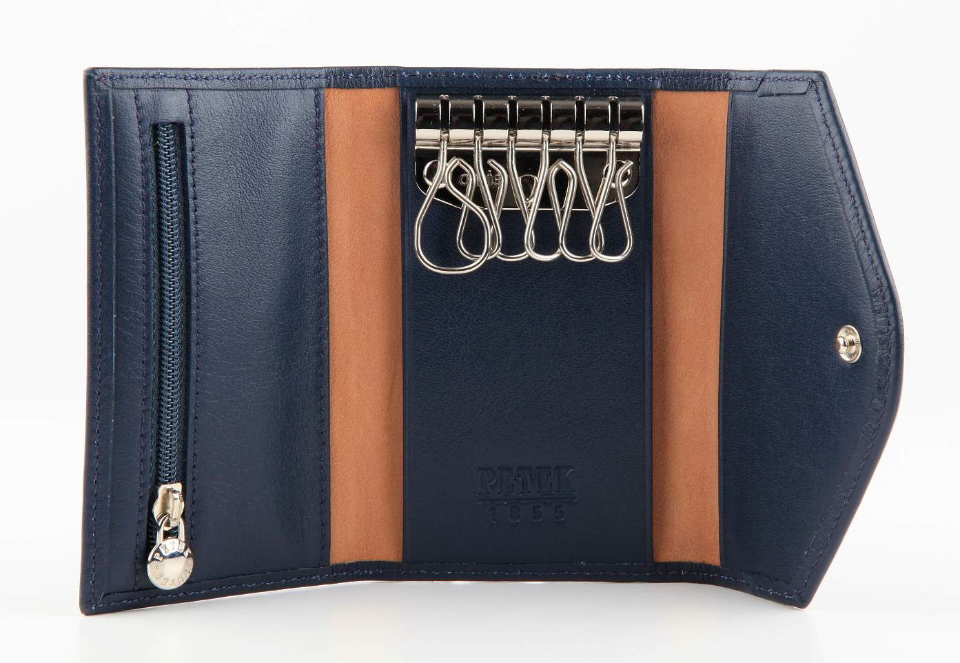 Стильная ключница Petek из натуральной кожи. Закрывается на кнопку. Внутри: шесть держателей для ключей, два маленьких кармашка (один на молнии).