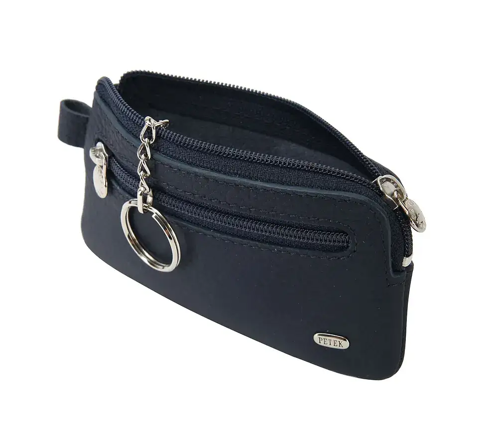 Ключница Petek изготовлена из натуральной кожи и закрывается на молнию. Внутри главного отделения расположен карабин для ключей, который обеспечивает надежное хранение ключей. Дополнительно ключница имеет два отделения на молнии для различных мелочей. Глубина бокового кармашка составляет 4 см, включая молнию, что позволяет хранить в нем небольшие предметы. В целом, ключница является удобным и стильным аксессуаром для хранения ключей и различных мелочей.
