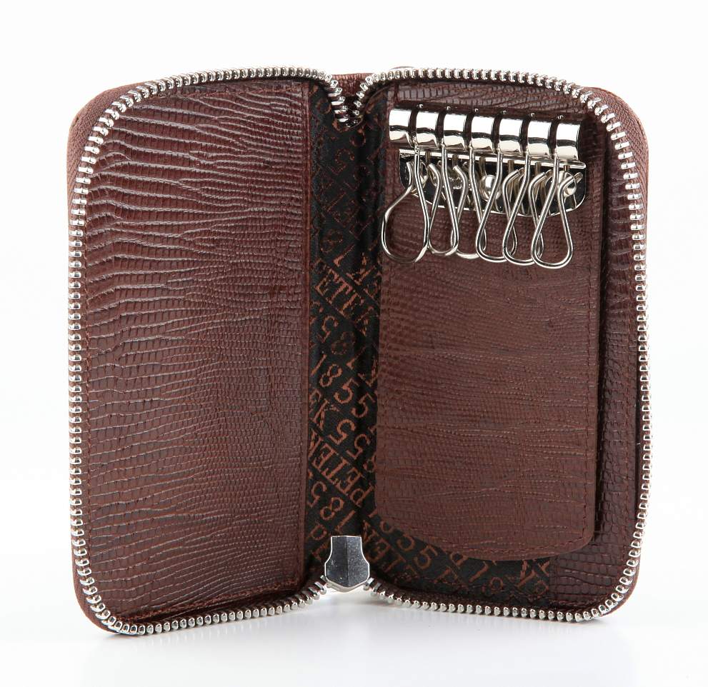 Современная и удобная ключница из натуральной кожи. Закрывается на молнию по периметру. Внутри шесть держателей для ключей.