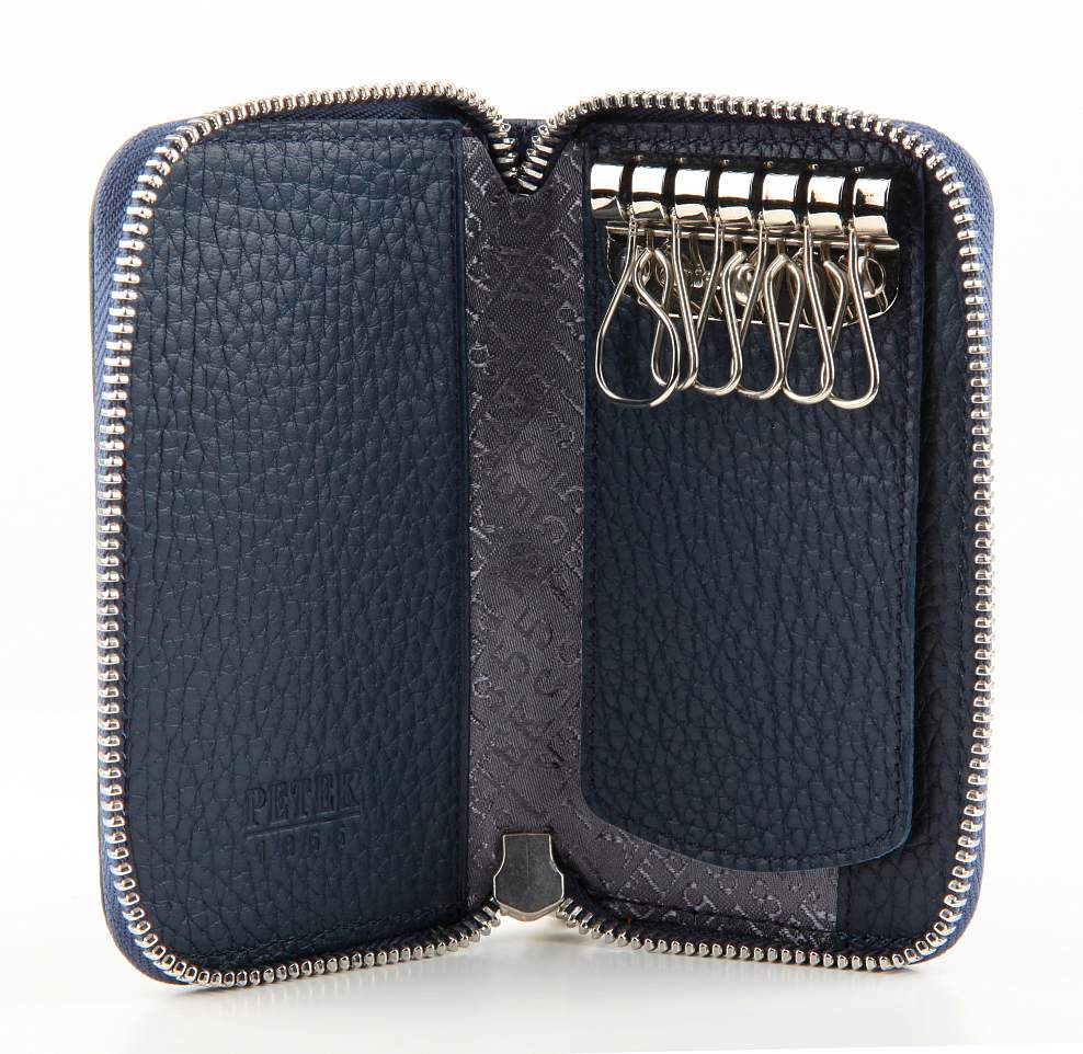 Современная и удобная ключница из натуральной кожи. Закрывается на молнию по периметру. Внутри шесть держателей для ключей.
