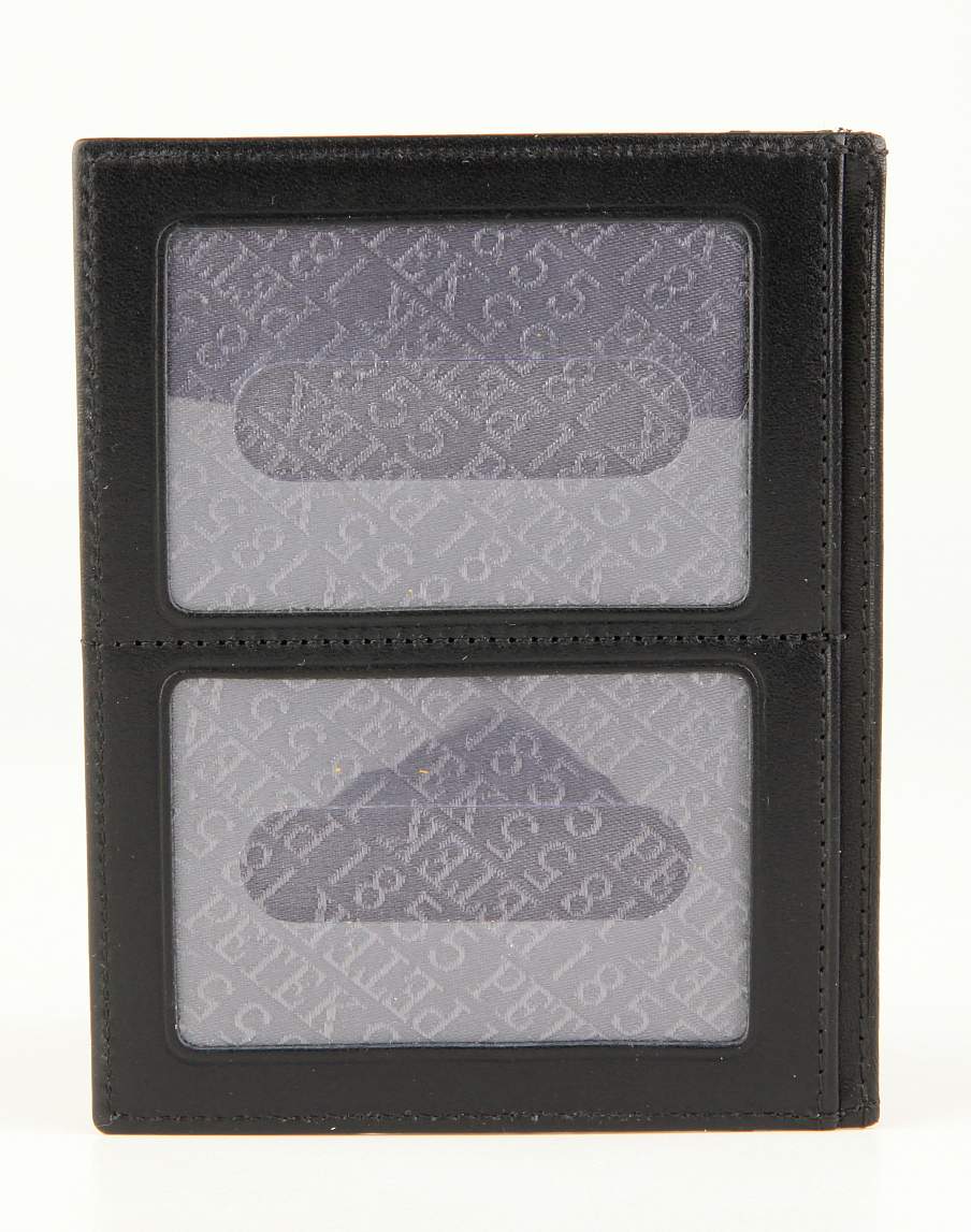 Мужская кожаная кредитница Petek. Внутри 4 отделения для пластиковых карт, 2 кармана для документов, 2 прозрачных кармашка для визиток или пластиковых карт.