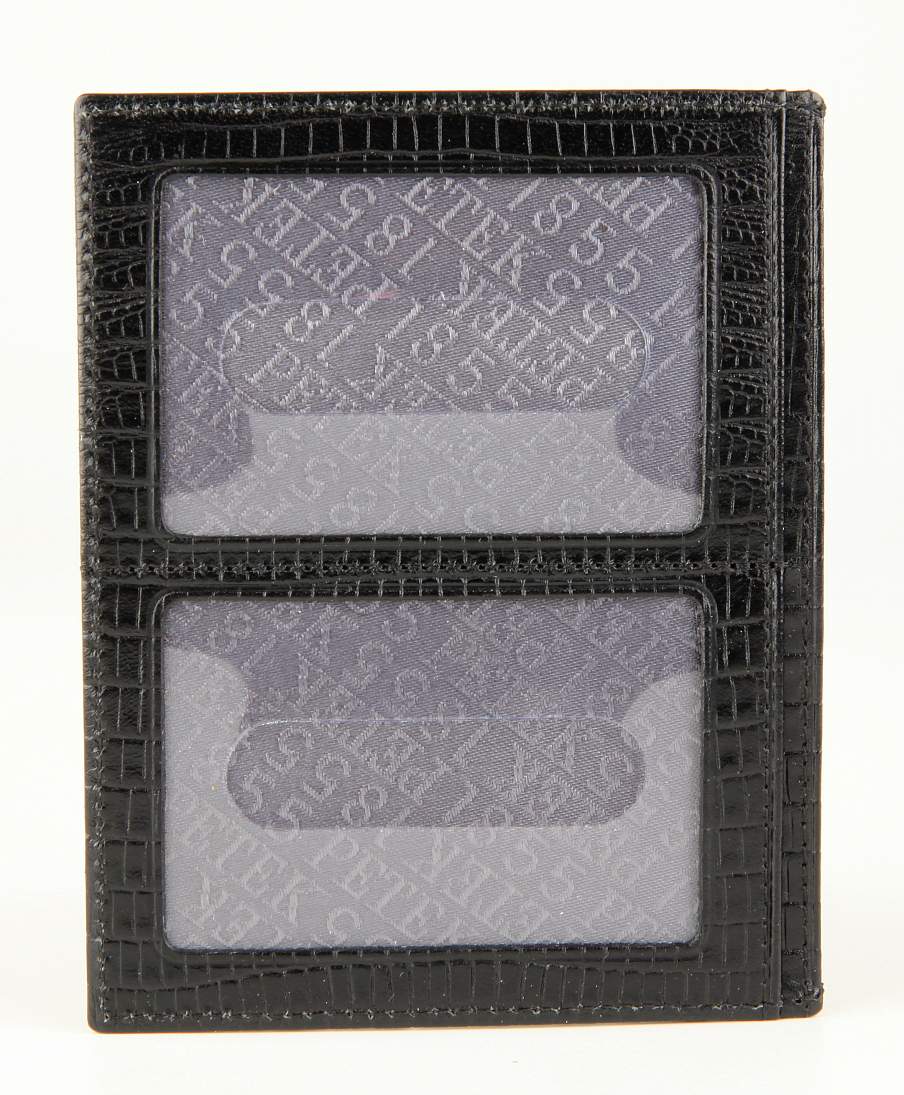 Мужская кожаная кредитница Petek. Внутри 4 отделения для пластиковых карт, 2 кармана для документов, 2 прозрачных кармашка для визиток или пластиковых карт.