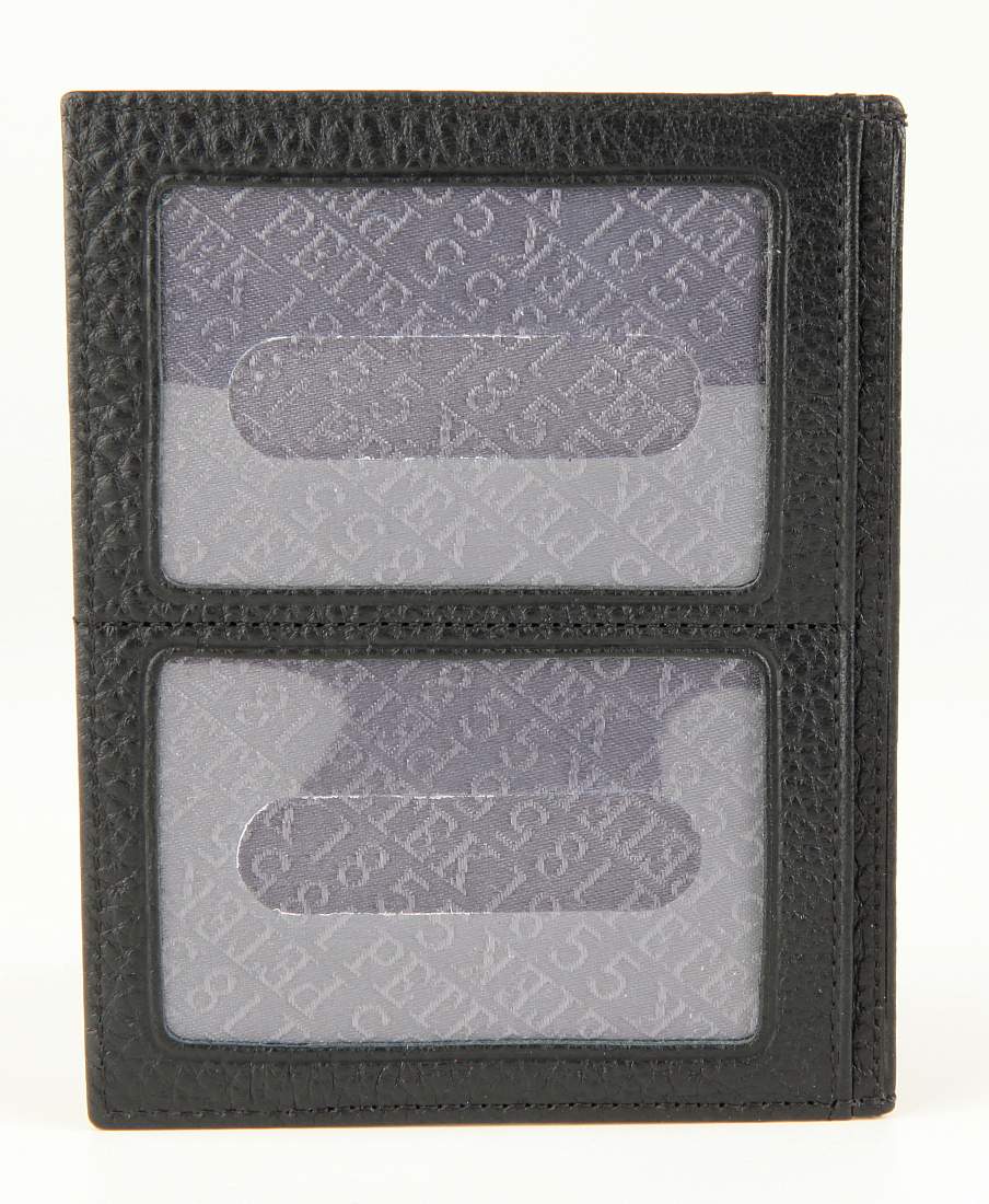 Мужская кожаная кредитница Petek. Внутри 4 отделения для пластиковых карт, 2 кармана для документов, 2 прозрачных кармашка для визиток или пластиковых карт.