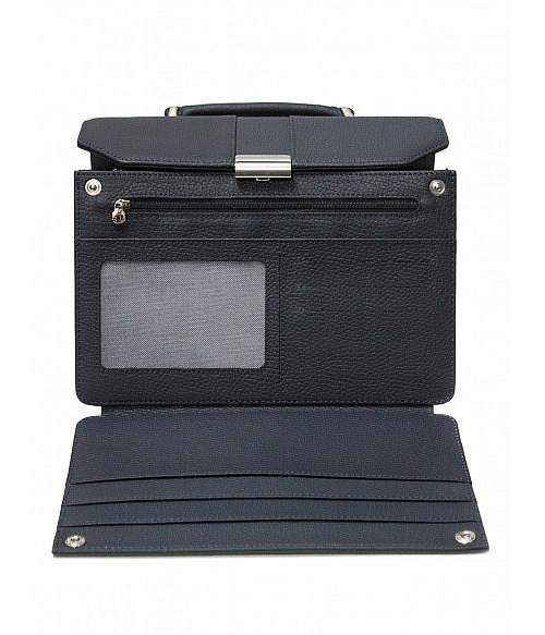 Мужская барсетка из натуральной кожи Petek с тремя внутренними отделениями, которые закрываются общим клапаном с кодовым замком. Внутри имеются три отсека, разделенные карманами на молнии, один карман на молнии и два отсека для ручек. Снаружи, на лицевой стороне, под клапаном находится откидной отсек на кнопках с дополнительными карманами и отделениями для визитных карт и пластиковых карт. На обратной стороне расположен карман с клапаном, барсетка оснащена удобной кожаной ручкой для переноски.
