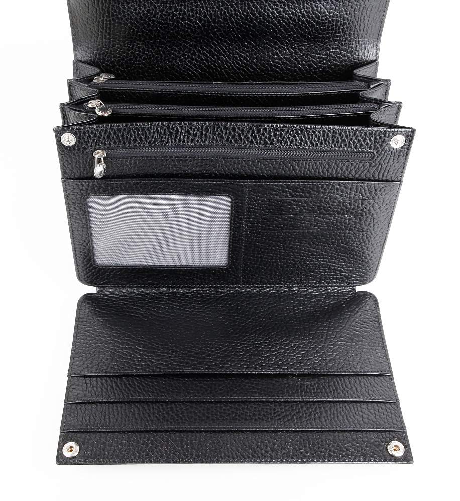 Мужская визитка Petek из натуральной кожи. Три отделения, два кармана на молнии, откидная планшетка (четыре кармана, отделение на молнии, три кармана для визиток). Сзади карман на кнопке.