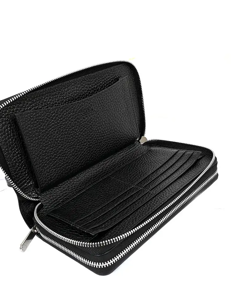 Клатч мужской Petek 1855 из натуральной кожи. Изделие состоит из двух частей закрывающихся на молнии. В одной части изделия находится отделение для телефона размеры: 17,5 х 9 х 2. ( помещается IPhone 15 Pro max с габаритным чехлом+).  8 карманов для карт, 1 доп. отделение под купюры, за карманами под карты. Во второй части изделия, выполнено 2 просторных отделения для купюр. 2 доп. отделения для купюр за карманами под карты. 16 карманов для карт. монетница на молнии. К изделию прилагается лямка (хлястик) для фиксации и носки на запястье.