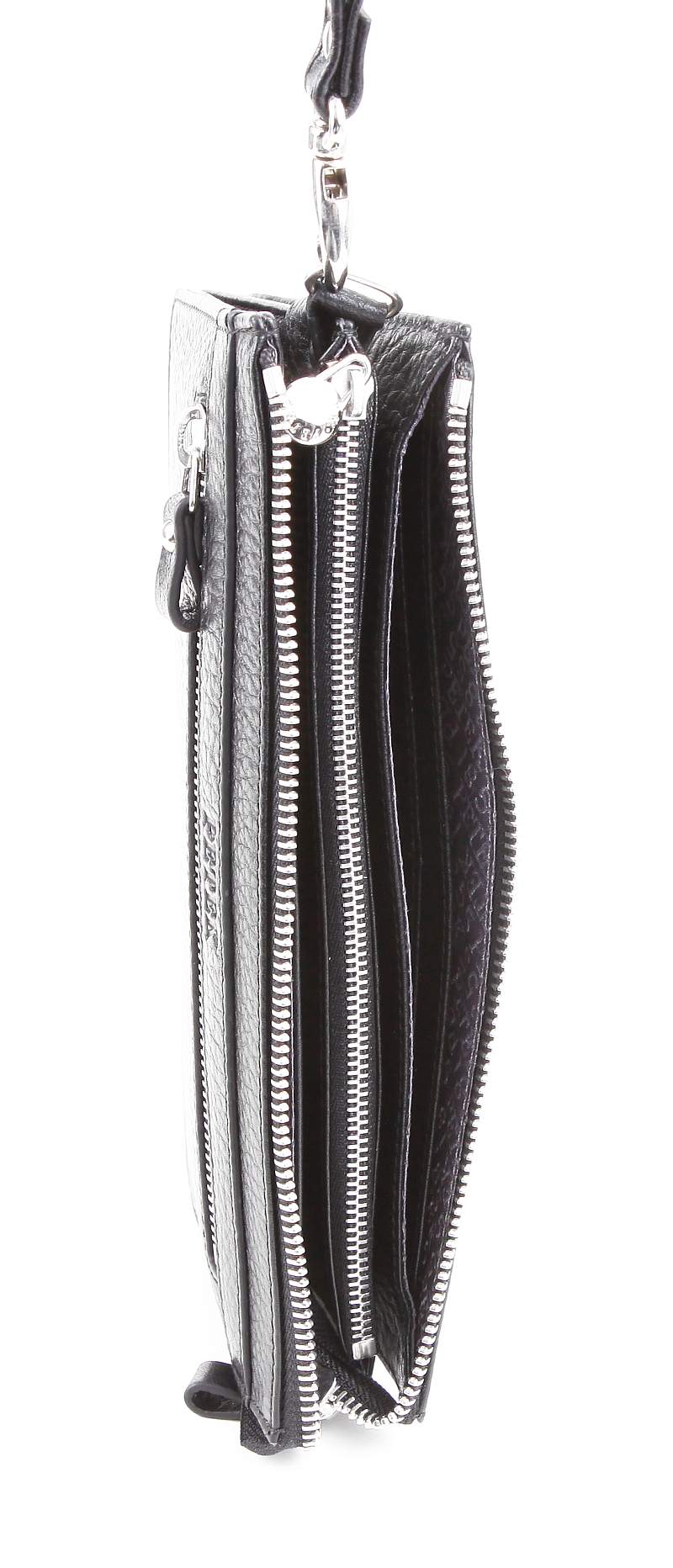 Мужская кожаная сумка-визитка Petek. Внутри 3 отделения, 1 из них на молнии, 8 отделений для пластиковых карт. Снаружи есть 1 карман на молнии и удобный ремешок для крепления на руку.