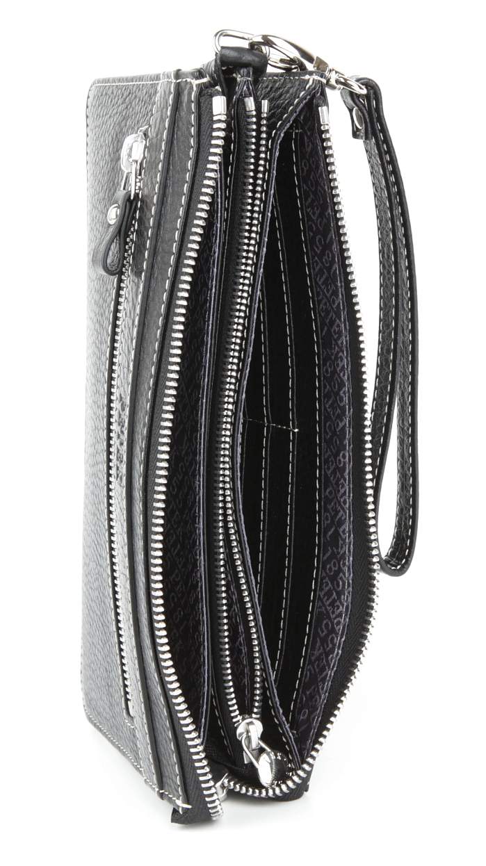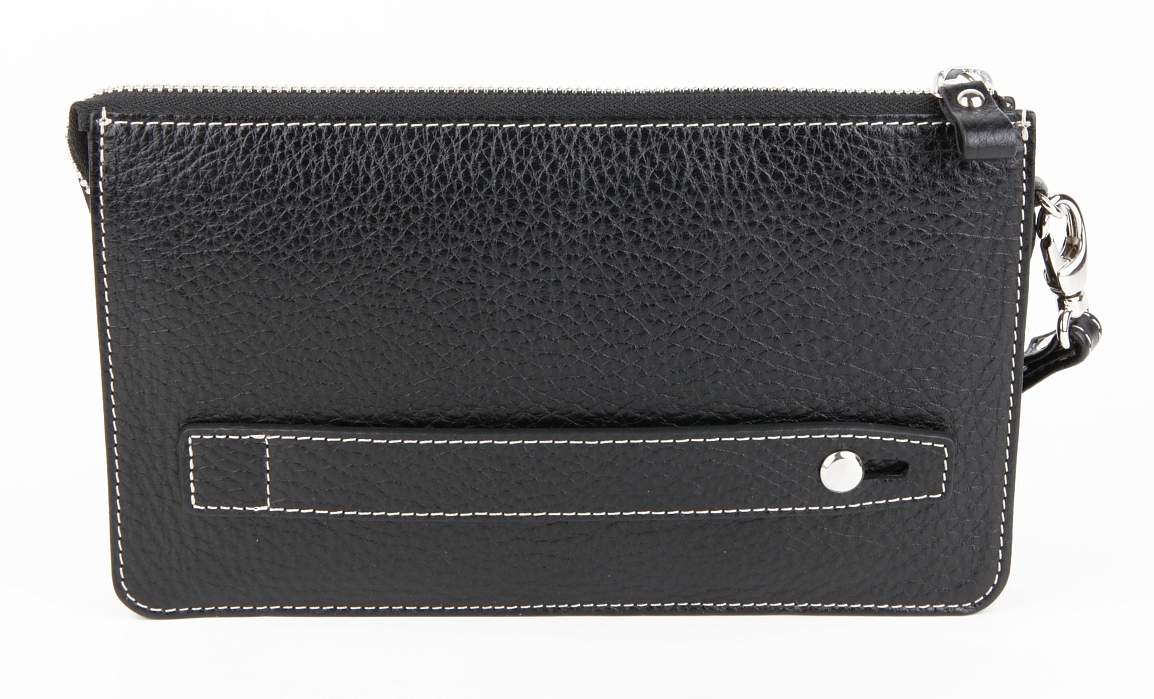Мужская кожаная сумка-визитка Petek. Внутри 3 отделения, 1 из них на молнии, 8 отделений для пластиковых карт. Снаружи есть 1 карман на молнии и удобный ремешок для крепления на руку.