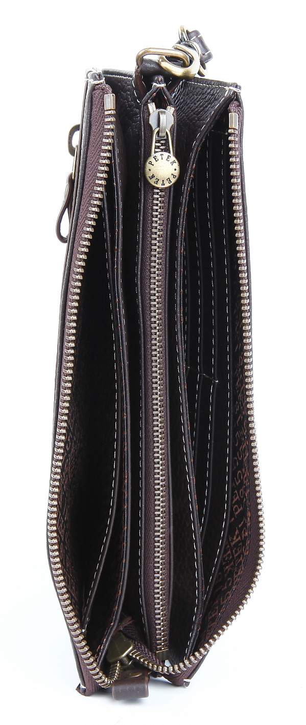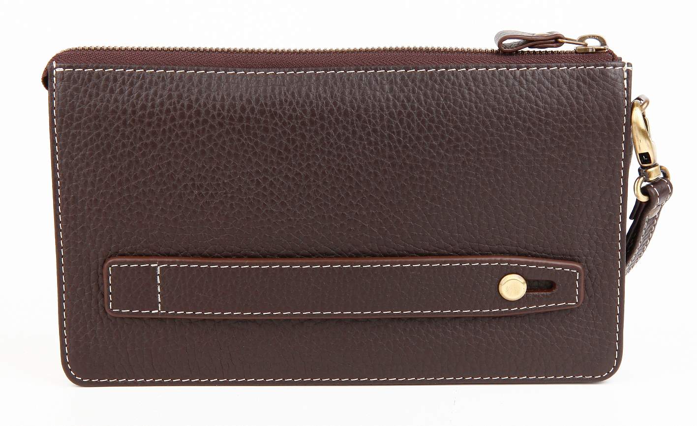 Мужская кожаная сумка-визитка Petek. Внутри 3 отделения, 1 из них на молнии, 8 отделений для пластиковых карт. Снаружи есть 1 карман на молнии и удобный ремешок для крепления на руку.